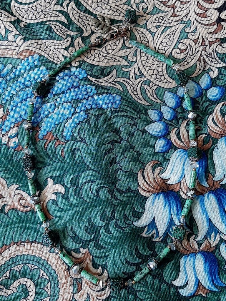 "Щелкунчик" и бусы из цоизита. Прочитала, что этот самоцвет служил вдохновением Пабло Пикассо. Увековеченный в картинах художника, цоизит дал жизнь новому направлению изобразительного искусства – кубизму. Минерал цоизит формируется в толще метаморфических или глаукановых пород. Находят его также в скарнах, где он сопутствует залежам горного хрусталя. Именно здесь камень был впервые открыт. Произошло это в 1805 году в Альпах, на территории тогдашней Австрийской империи. Первоначальное название самоцвета звучало как «заульпит» — в честь гор, где его обнаружили. Свое современное имя получил камень в честь Зигмунда Цойза, словацкого минералога. Он изучал самоцвет в течение долгого времени, очарованный его красотой. Также он поддерживал своих коллег-исследователей, обладая внушительными финансовыми возможностями. Благодарные ученые решили увековечить имя Цойза, договорившись называть заульпит цоизитом. Очень удивила информация о том, что танзанит и цоизит - родственники. Цветовая гамма у "Щелкунчика" позволяет его сочетать в большим количеством самоцветов.