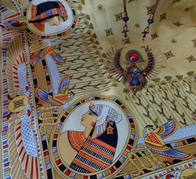 Два скарабея. "Скарабей" (атлас), рисунок 1252-16 Валерии Фадеевой и "Скарабей" (лазурит, сердолик, опал в бронзовой оправе) ювелира Сидоровой Ирины.