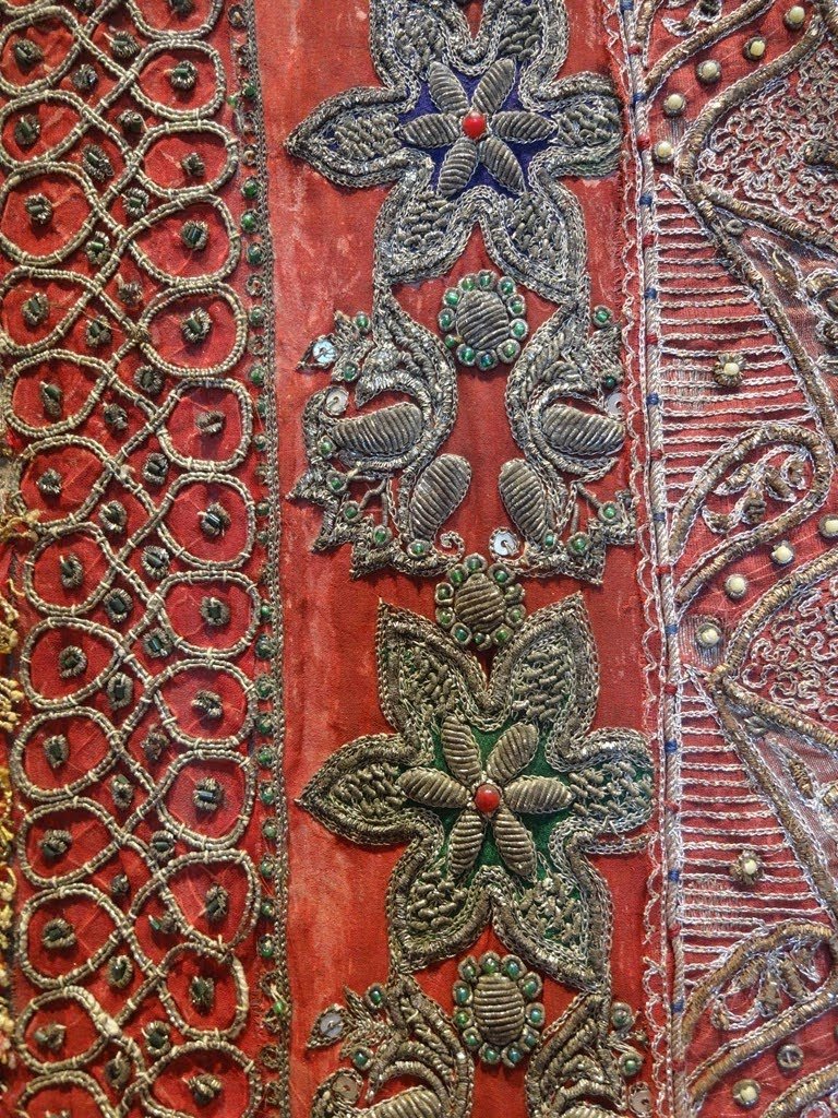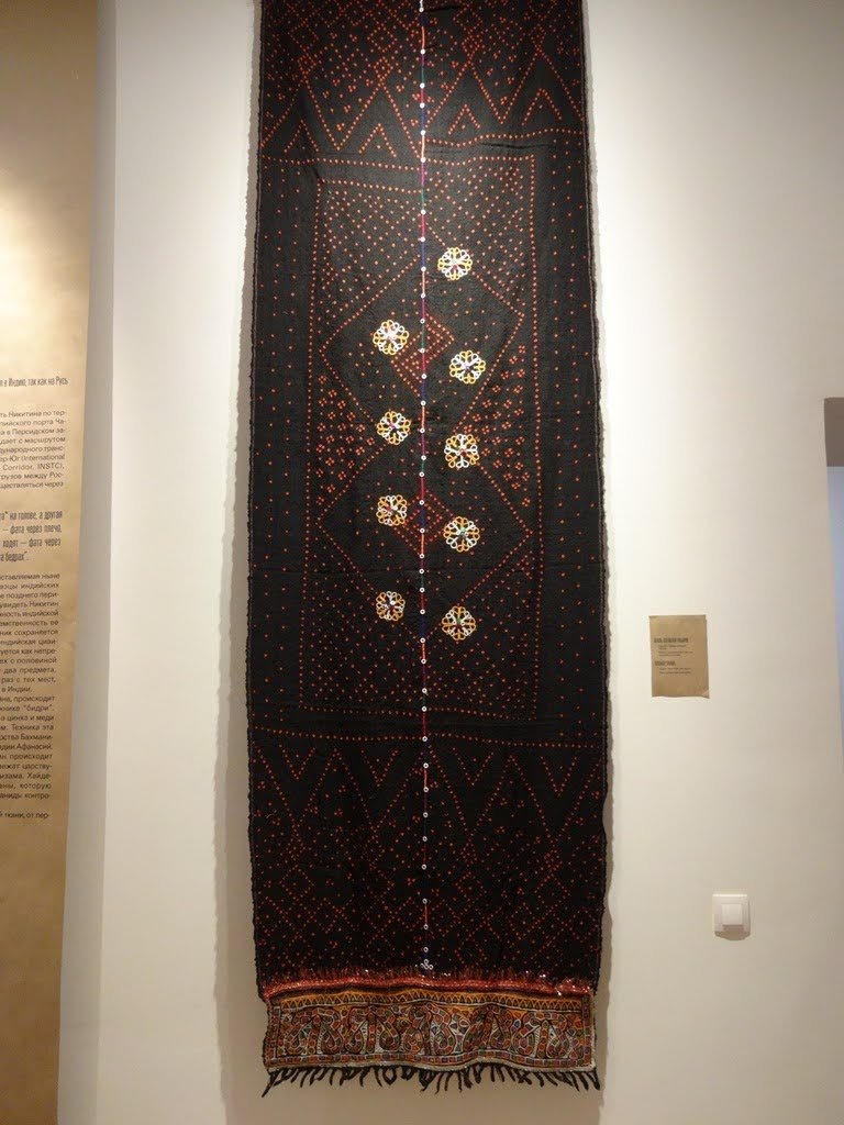 Выставка "Индия. Отражения" в НГХМ. Среди экспонатов - образцы тадиционного ручного ткачества, вышивка. Еще на выставке представлены великолепные шёлковые сари, изготовленные в специализированных мастерских с конца XIX по середину XX веков, муслиновые шали, покрыва в древней и исчезающей технике двойного иката, большие вышитые панно и ткани с религиозными сюжетами. Хотелось увидеть шали с набивными рисунками, но на выставке таких шалей не было.