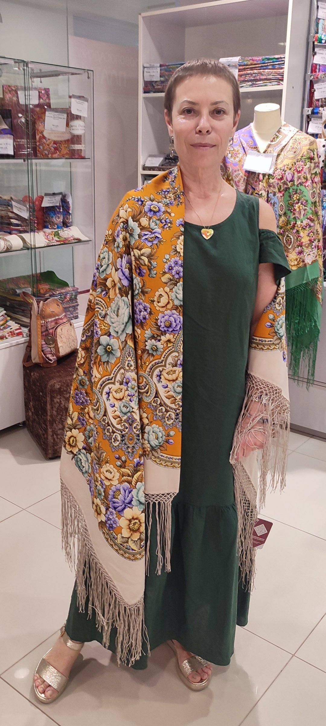Демонстрируем ношение платков и шалей.