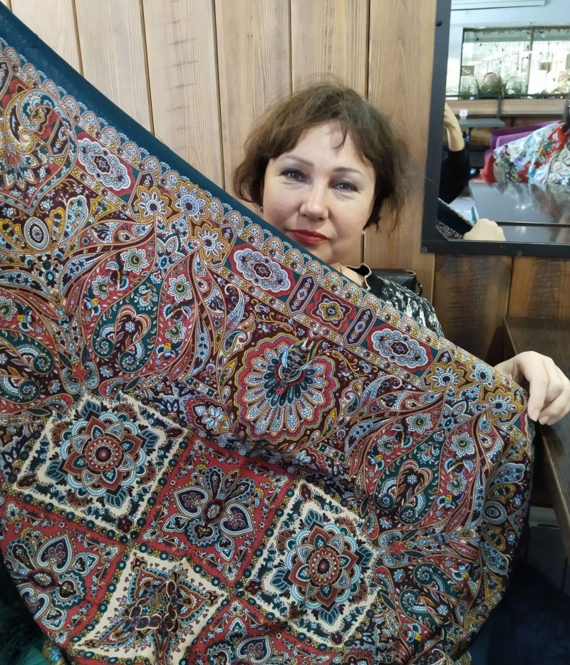 И ещё про Зрелый возраст. Шаль завораживает. Видела и с красной каймой и с черной. С красной понравилось больше. Но не идёт от слова совсем. Как бы хотелось, чтоб вместо красного был насыщенный зелёный, изумрудный. Или синий. Не очень темный, но и не светлый. Хоть помечтать