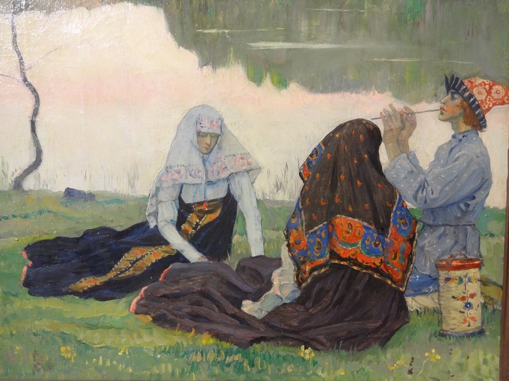 Среди экспонатов выставки картина М. В. Нестерова "За Волгой. Пастушок". Тема платка...просто.