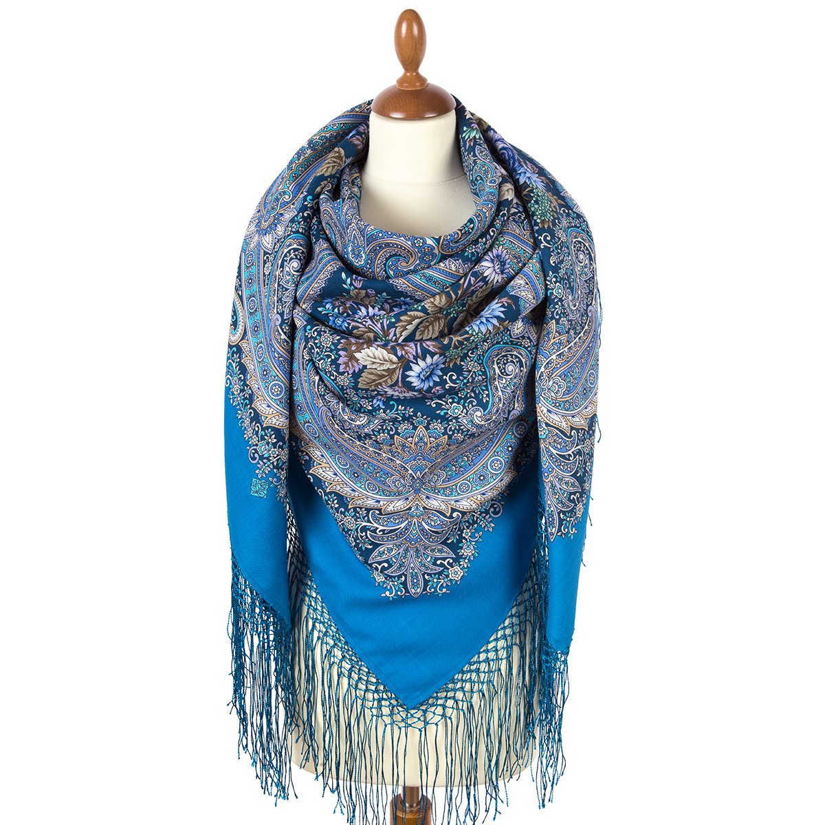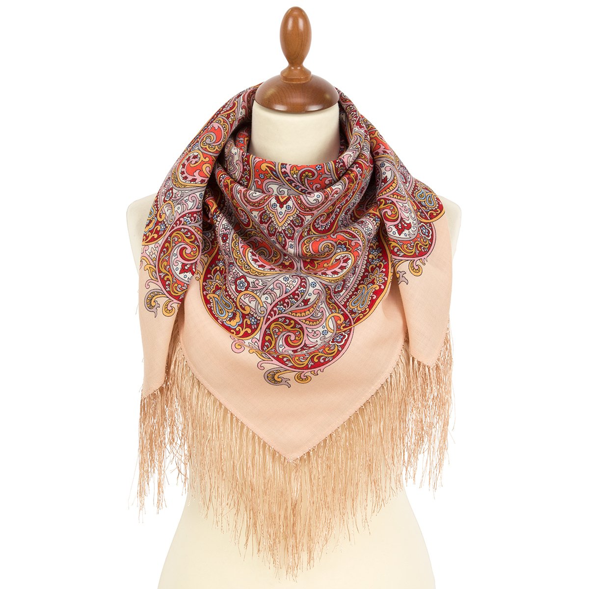 Платок шерстяной с шелковой бахромой, 146x146 см