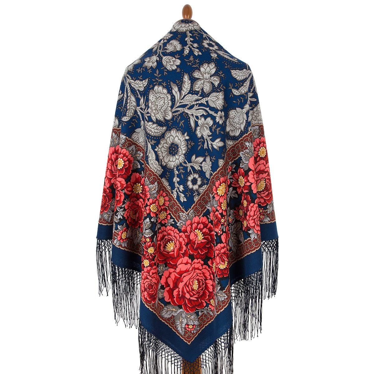 Многоцветный платок из уплотненной шерстяной ткани с шелковой бахромой, 148х148см, коллекционный