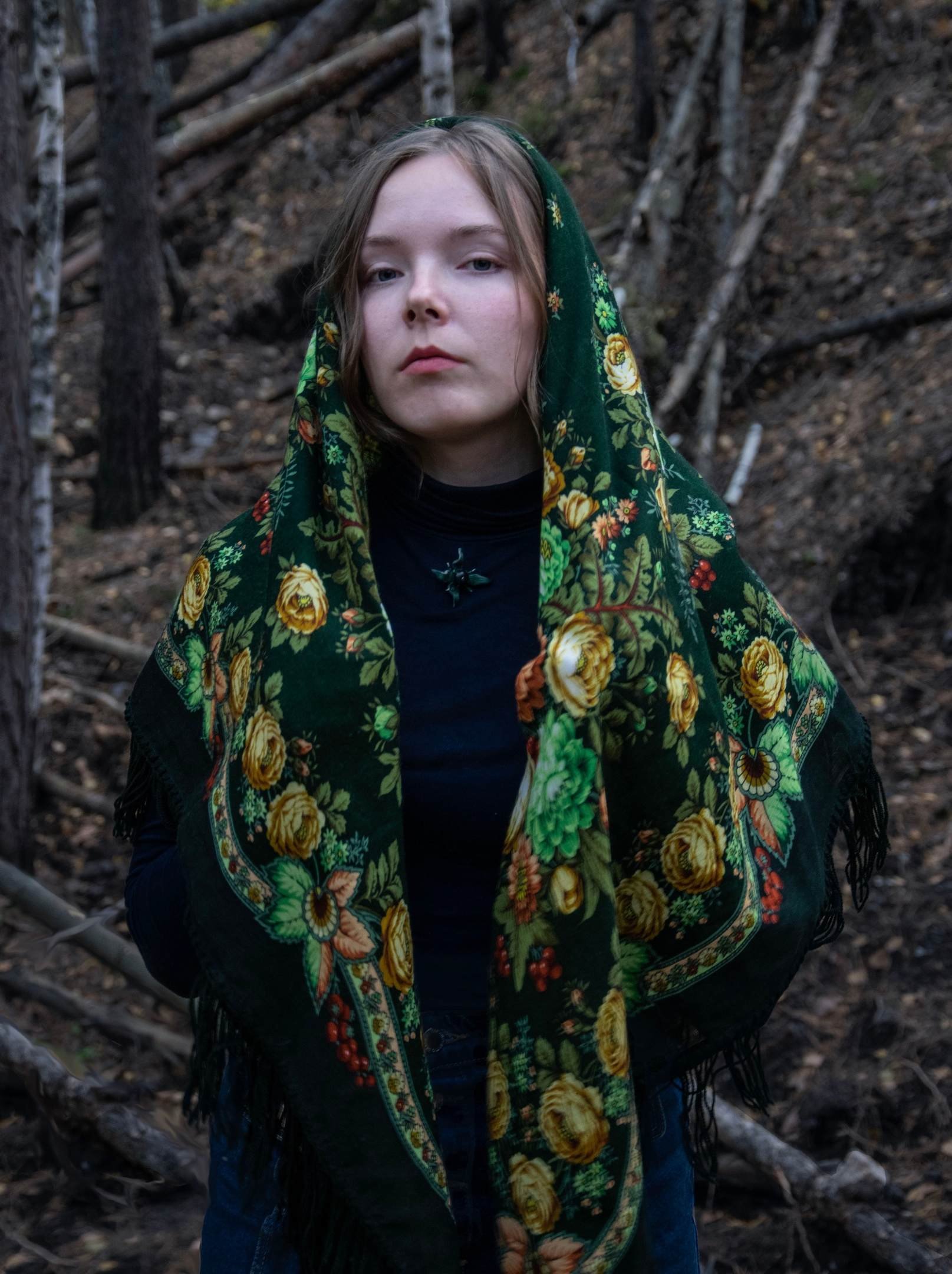 Сказочный портрет. Хозяйка леса!Volchyagoda писал(а): ↑22 сен 2023, 22:22И хочется показать, как этому платку идет и более темная обстановка).