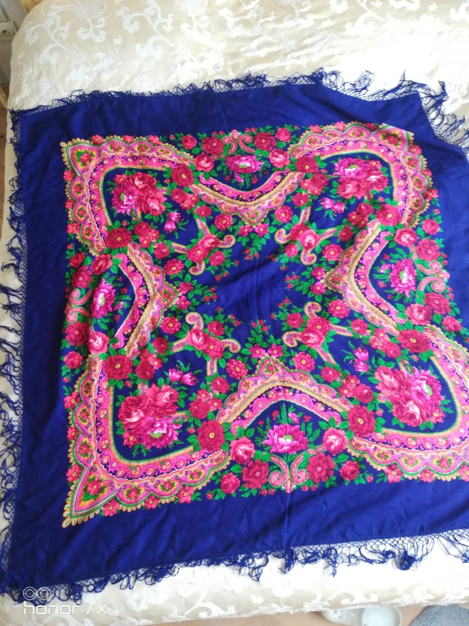 Сегодня была очарована маленьким кусочком платка. Судя по качеству ткани, похож на наш. Уззнаете?