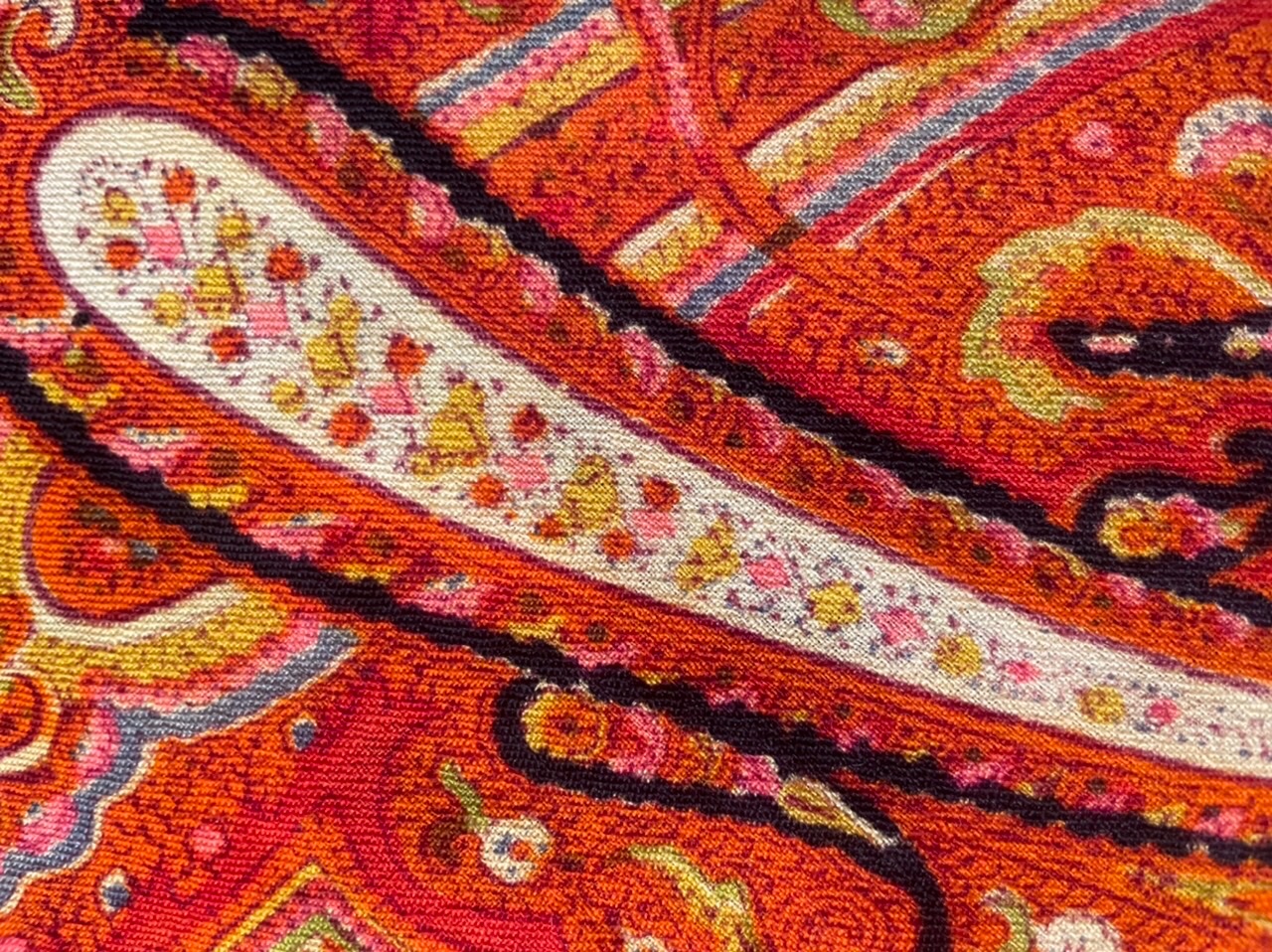 Отличается ткань, на которой набита шаль — эта шаль не смесовая, а на тонкой шерсти. По этим признакам можно предположить, что место и время производства одно.