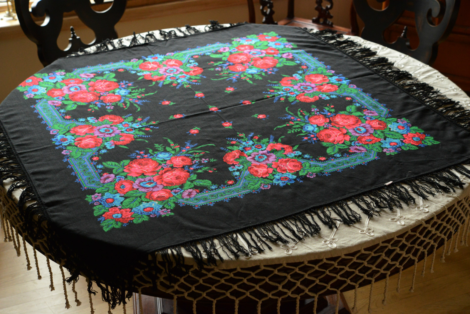 Серенада -(?) вариант чернопольного колорита с бирюзовым рисунком с алыми розами
