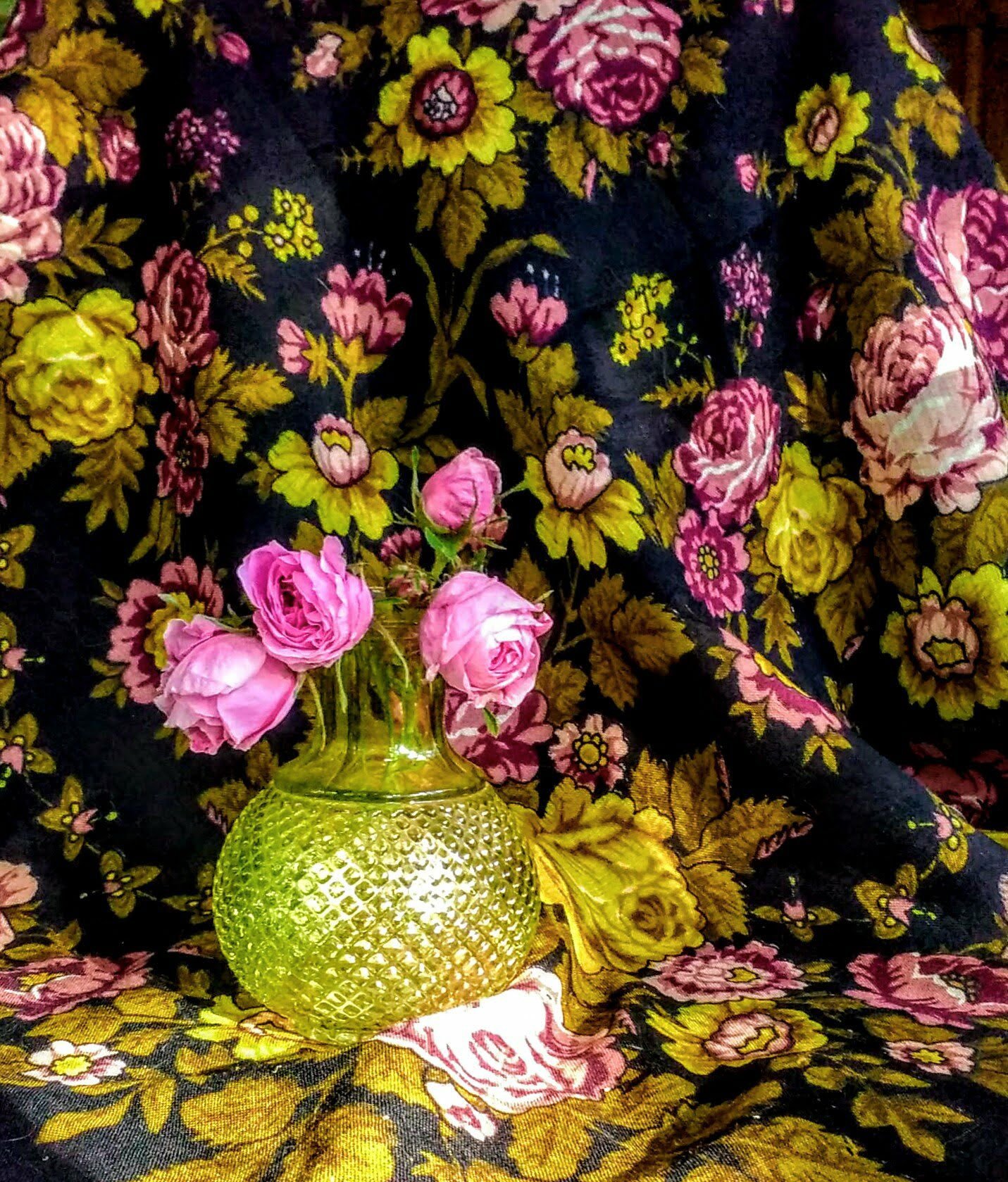 Я когда ждала посылку все ёго разглядывала. Цветное стекло, шаль, розы. Миниатюра!