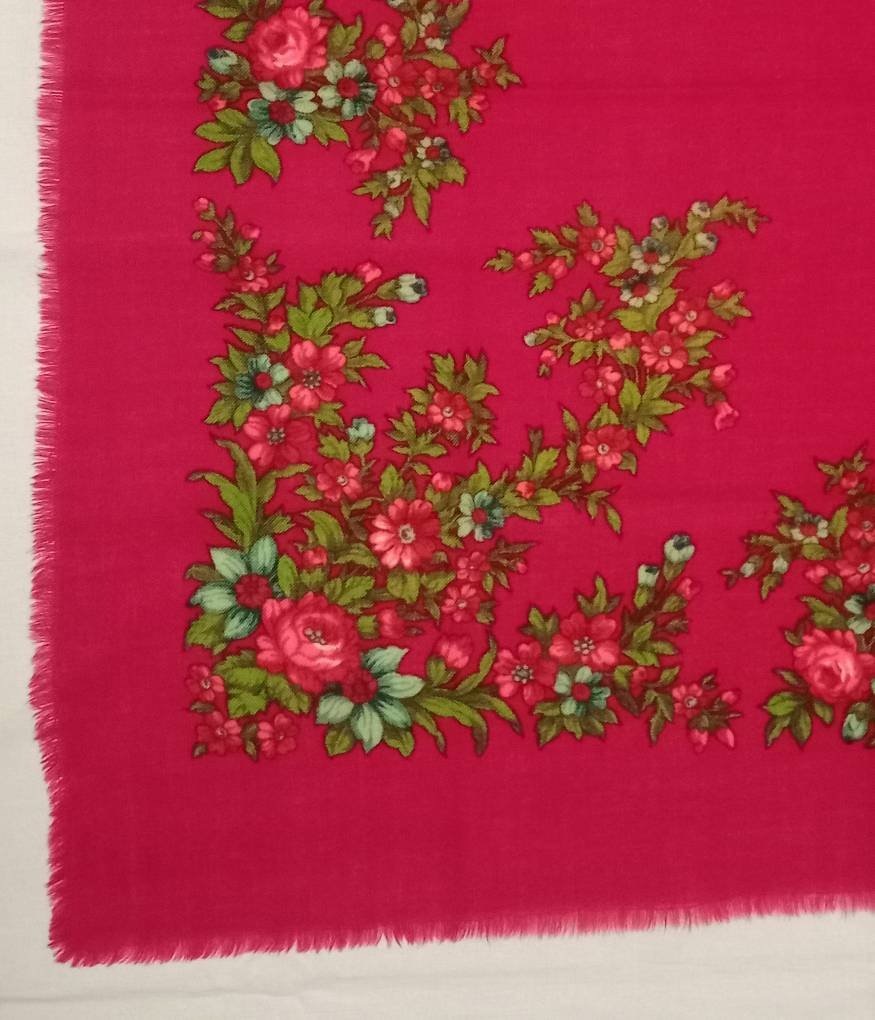 Сейчас покажу платок определённо шерстяной, тонкая шерсть. Я его купила специально, чтобы показать здесь. Потому, что такого рисунка ещё не было. Размер 92 на 94 см. Интуитивно, 1960-е.