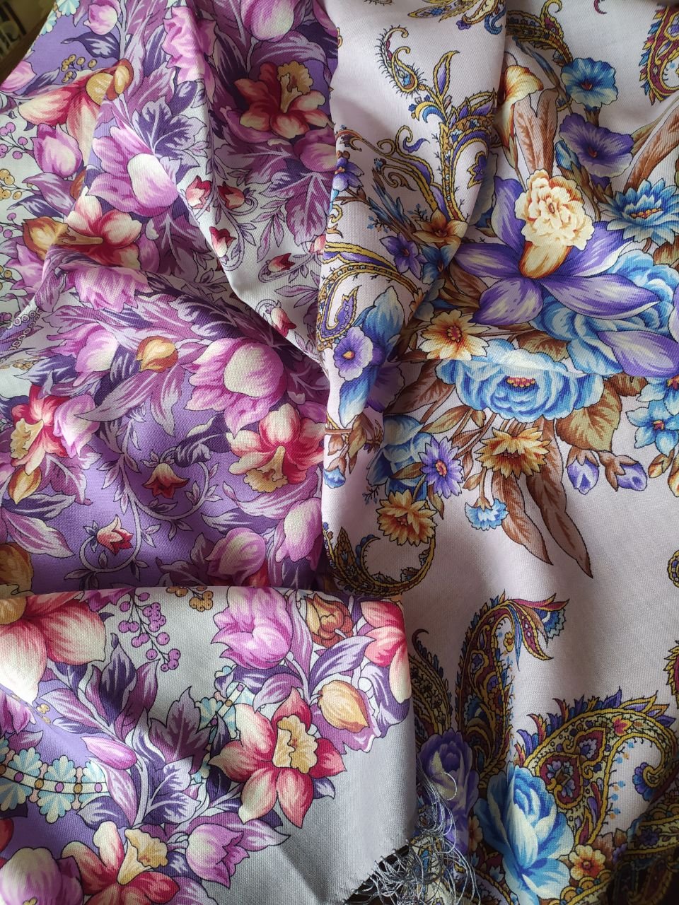 А я принесла фото Отрады с Феерией. Сестры Ларины, как я их называю. Но если Отрада- Татьяна для меня стала мастхэвом, Феерия совсем не обязательна, при всем моем обожании платков 135 размера. Когда они лежат рядом немного задрапированные - полное впечатление,что это один платок. Но нет. Совсем нет. Отрада сдержаннее, благороднее, малоцветнее,в хорошем смысле. Феерия очень юная , милая и простодушная. Носить Феерию мне сложнее, и это про весну. Отрада- про неброское и светлое достоинство.