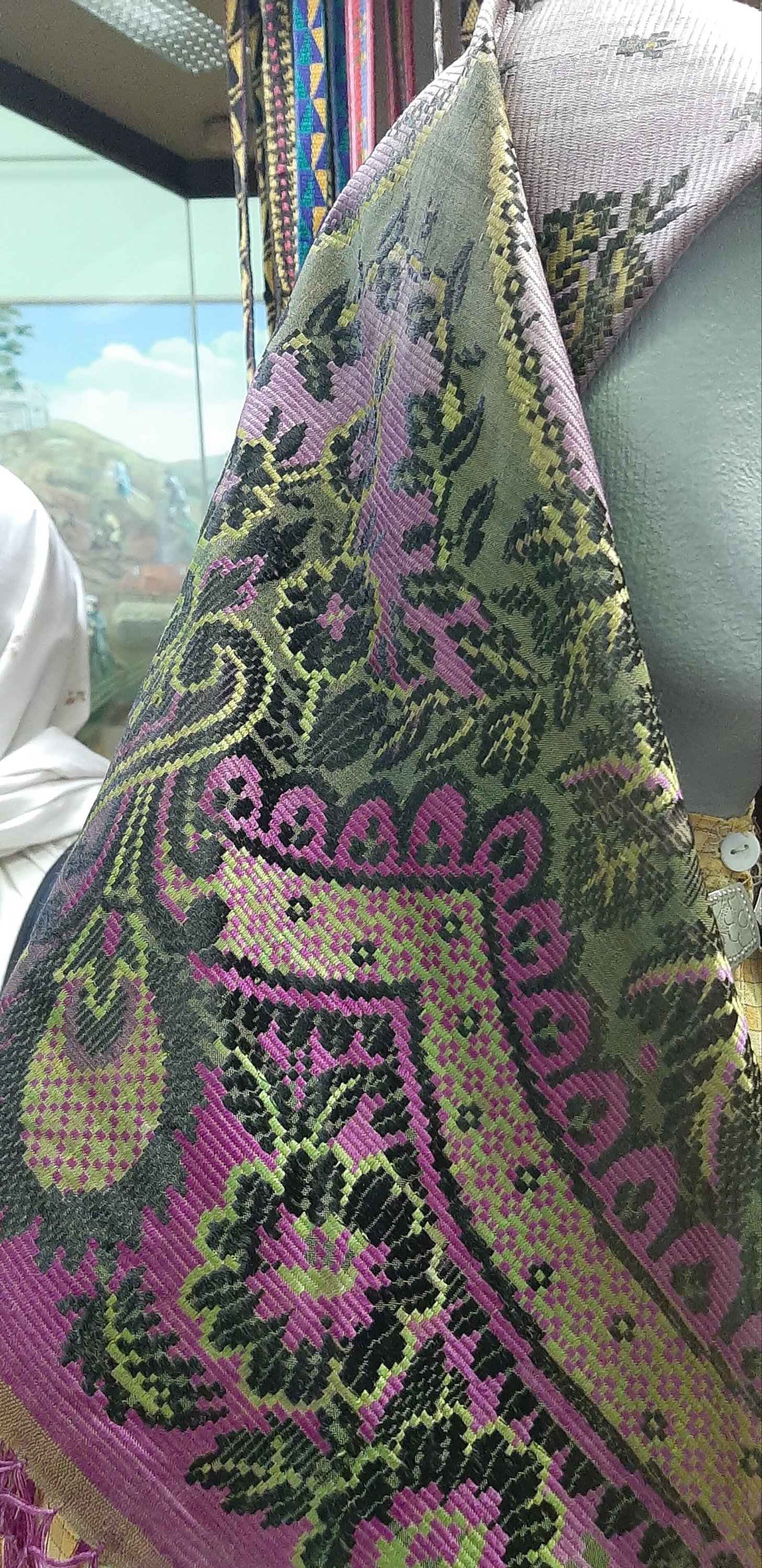 Выставка "Индия. Отражения" в НГХМ. Среди экспонатов - образцы тадиционного ручного ткачества, вышивка. Еще на выставке представлены великолепные шёлковые сари, изготовленные в специализированных мастерских с конца XIX по середину XX веков, муслиновые шали, покрыва в древней и исчезающей технике двойного иката, большие вышитые панно и ткани с религиозными сюжетами. Хотелось увидеть шали с набивными рисунками, но на выставке таких шалей не было.