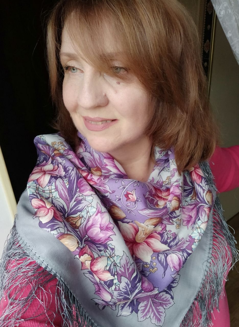 Соловьиные ночи, кажутся девичьими, что ли, зефирные. Интересно посмотреть их вместе с Магией чувств.Golden Fox писал(а): ↑06 ноя 2023, 17:27Я еще одного малыша забыла показать. Этот очень понравился дочке, так что в кандидаты на выбывание он даже и не попал. Меня накрыло лиловой "волной", причем это, кажется, заразно, платочек тоже из этих, из сиреневых. Когда я о нем думала, я рассчитывала, что он составит family look для парного гардероба с дочкой. Я в Магии чувств своей разлюбезной, лиловой, а она в Соловьиных ночах. В принципе, так и получилось. Но рядом платки не настолько похожи, как я думала( отнесу сравнение в тему), Магия намного синее и голубее. А Соловьиные ночи скорее отливают розовым. И довольно сильно. Еще вот что, на единственном Валином фото в архиве он ну очень бледный и светлый. Это эффект магазинного освещения, или разница печати - не знаю, но мой заметно ярче и "отчетливей" красками. Мне очень нравятся рисунки Сергея Кутузова, последнее время много их покупала, но еще не поняла, идут ли мне...дочке идут точно.