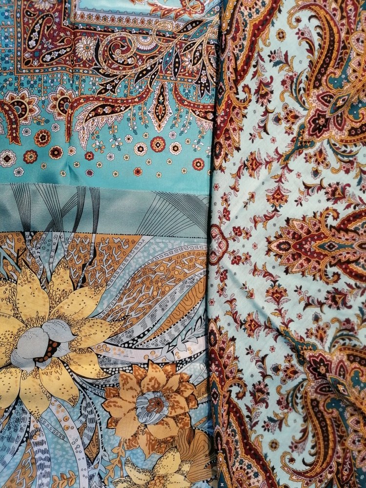 А я принесла фото Отрады с Феерией. Сестры Ларины, как я их называю. Но если Отрада- Татьяна для меня стала мастхэвом, Феерия совсем не обязательна, при всем моем обожании платков 135 размера. Когда они лежат рядом немного задрапированные - полное впечатление,что это один платок. Но нет. Совсем нет. Отрада сдержаннее, благороднее, малоцветнее,в хорошем смысле. Феерия очень юная , милая и простодушная. Носить Феерию мне сложнее, и это про весну. Отрада- про неброское и светлое достоинство.