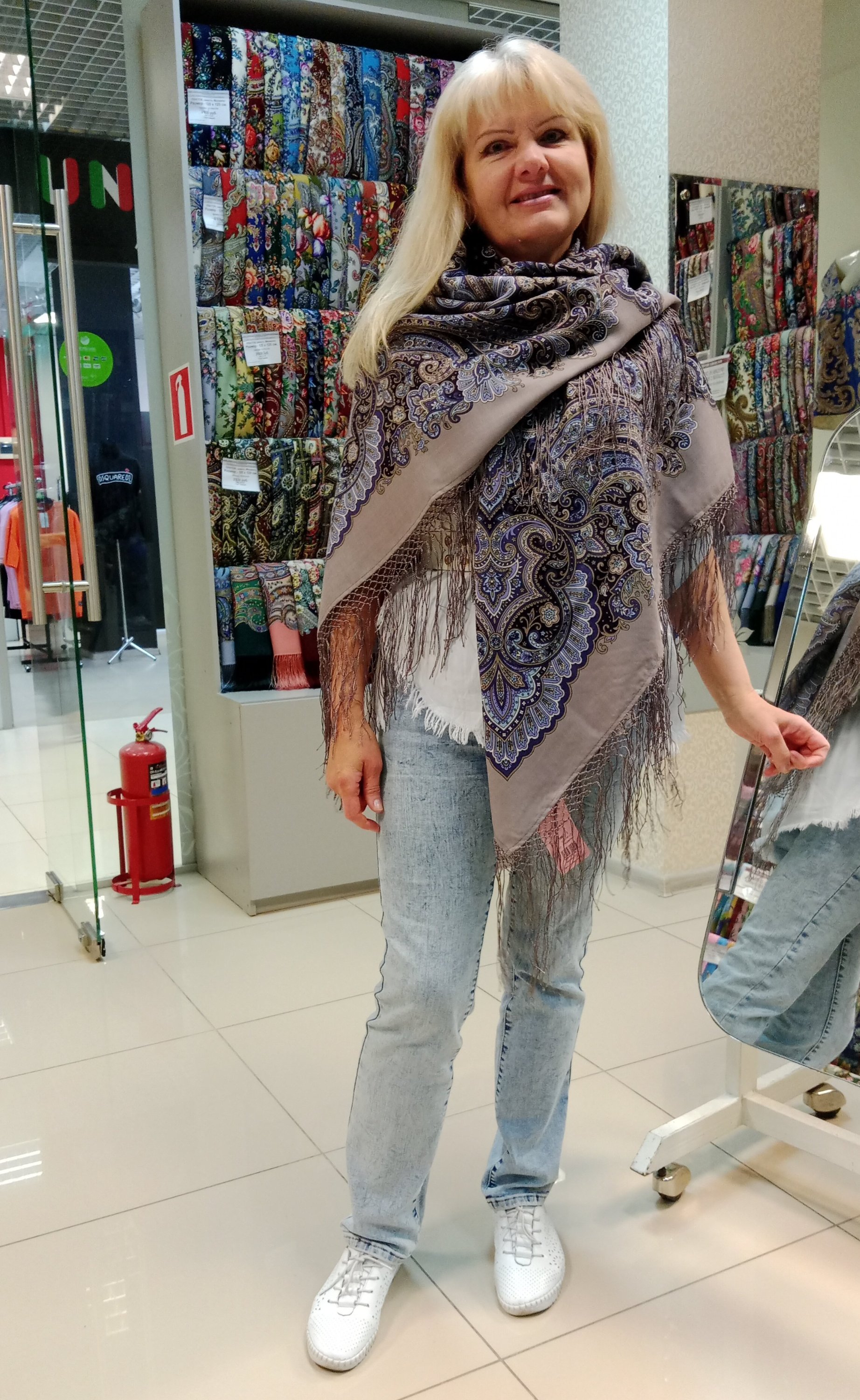 Ну коли с 10-летним юбилеем я отметилась в примерочной, хочу написать об июльской встрече в Воронеже, спустя 5 лет.Дочка в Воронеже купила квартиру, и я ехала смотреть её приобретение. Ну и, конечно, одним из главных мероприятий данной поездки было посещение воронежского магазина павловопосадских платков и встреча и знакомство (хотя виртуально мы знакомы) с хозяйкой и хранительницей магазина ППМ умницей и красавицей,милой и обаятельной Оксаной Фёдоровой. Оксаночка, спасибо за тёплый приём, профессиональное обслуживание и приятное общение. Оксана очень внимательный, добрый , тактичный продавец, любящий платки и знающий свой ассортимент. Это человек, который настолько любит свою работу и платки, что практически работает на голом энтузиазме одна, без сменщицы. Да и продажи сильно упали из-за цен. Мануфактура, вы должны ценить таких работников. Встреча с платками разбередила душу, чувства вспыхнули вновь, опять захотелось многого. Опять случился рецидив, и хомяк нокаутировал жабу.