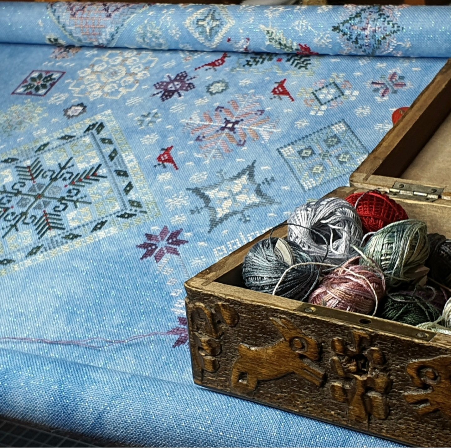 Прежде не вдохновляла зимняя тема в вышивке, а нынче хочется доброй зимы и новогодья.