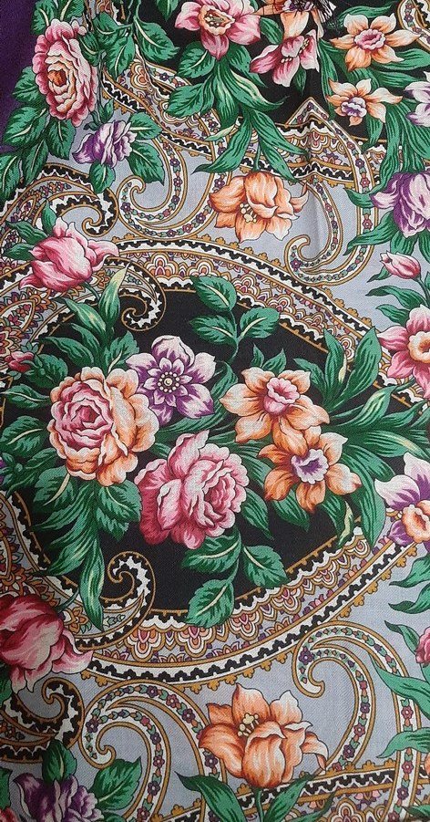 Платок розовый!!! У меня на мониторе на сайте он красный, а в жизни хороший винтажный розовый. Ложится к лицу хорошо и идет - делает меня малость посвежее.