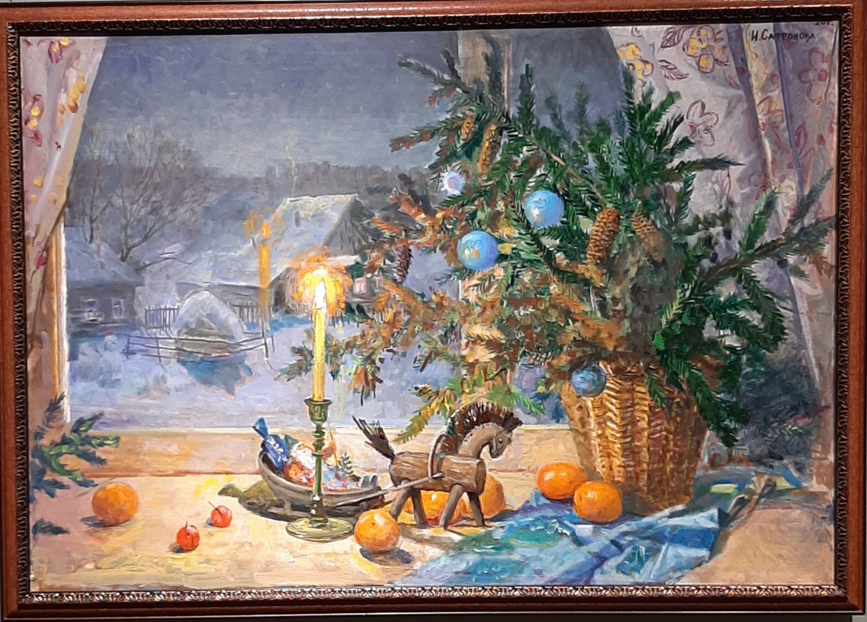 Новый 2024 год уже примчался, но в музеях еще продолжаются выставки, связанные с темой его встречи. Фото с выставки картин Инессы Сафроновой