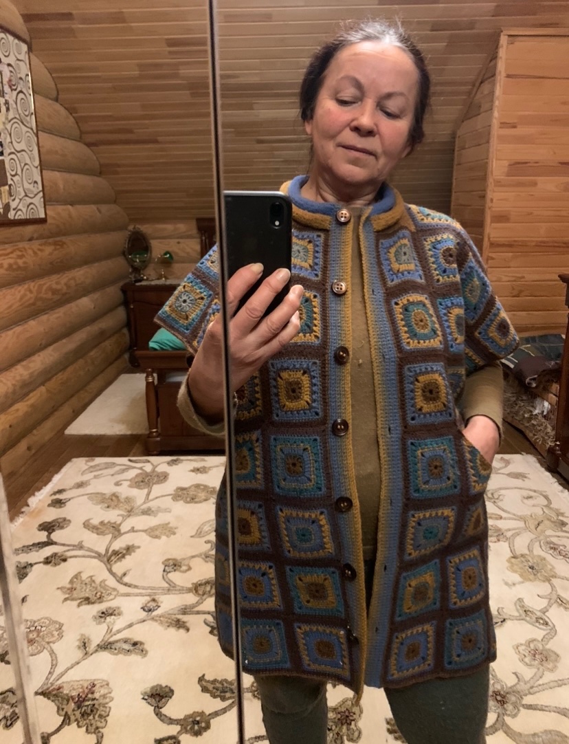 Девочки-вязальщицы, какие приятные творения у вас! Молодцы! Я для дома тоже связала жилет или тунику? Мне важно, чтобы можно было расстегнуть, если жарко становится во время работы. Ну, и карманы нужны для телефона.