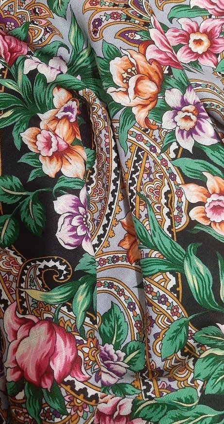 Платок розовый!!! У меня на мониторе на сайте он красный, а в жизни хороший винтажный розовый. Ложится к лицу хорошо и идет - делает меня малость посвежее.