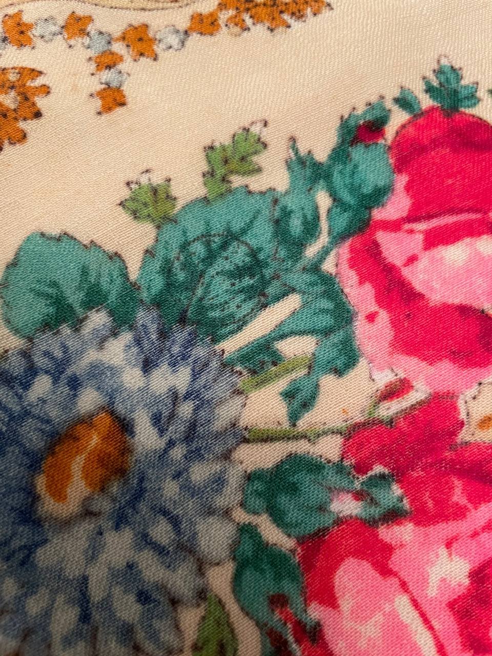 Благодарю за ценное замечание! На первый взгляд они мне показались абсолютно похожи. А вот теперь вижу интересные различия: в букетах укорочены макушки, вместо трёх цветов, как на ППД_28, в ППГ_5 включены два цветка и есть ещё упрощения рисунка. Вот теперь стало интересно, как проходила трансформация. Мы фиксируем несколько размеров — и полушалок, и полноразмерную шаль. Получается, что рисунок был моден и популярен. Возможно его производили долго и набойные доски могли выходить из строя. Может быть их резали снова и облегчали элементы. А возможно, что это и разные мануфактуры создавали ППД_28 и ППД_5, копируя модный рисунок, но вносили изменения.