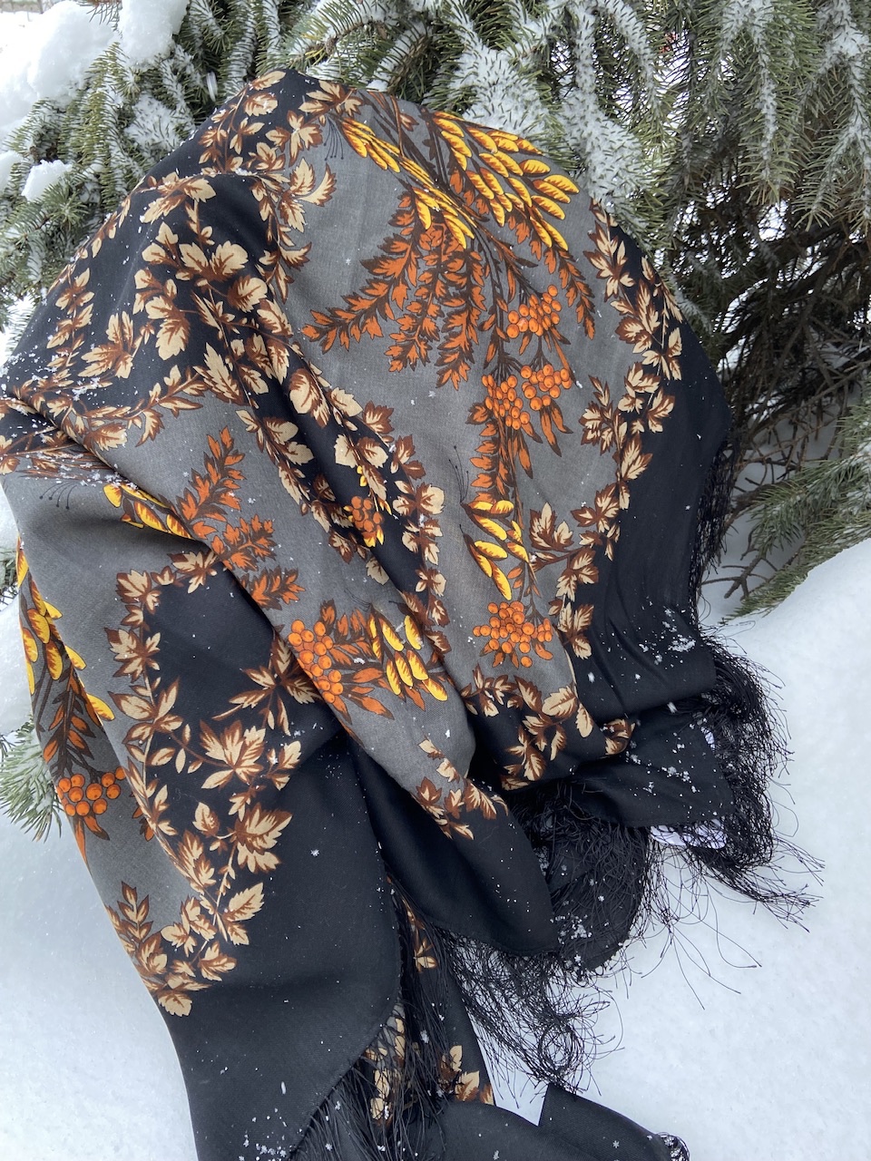 Дуэтом платки шикарно смотрятся. Носила Февраль под шапочку ( не эту, беленькую), а на плечи Майю.