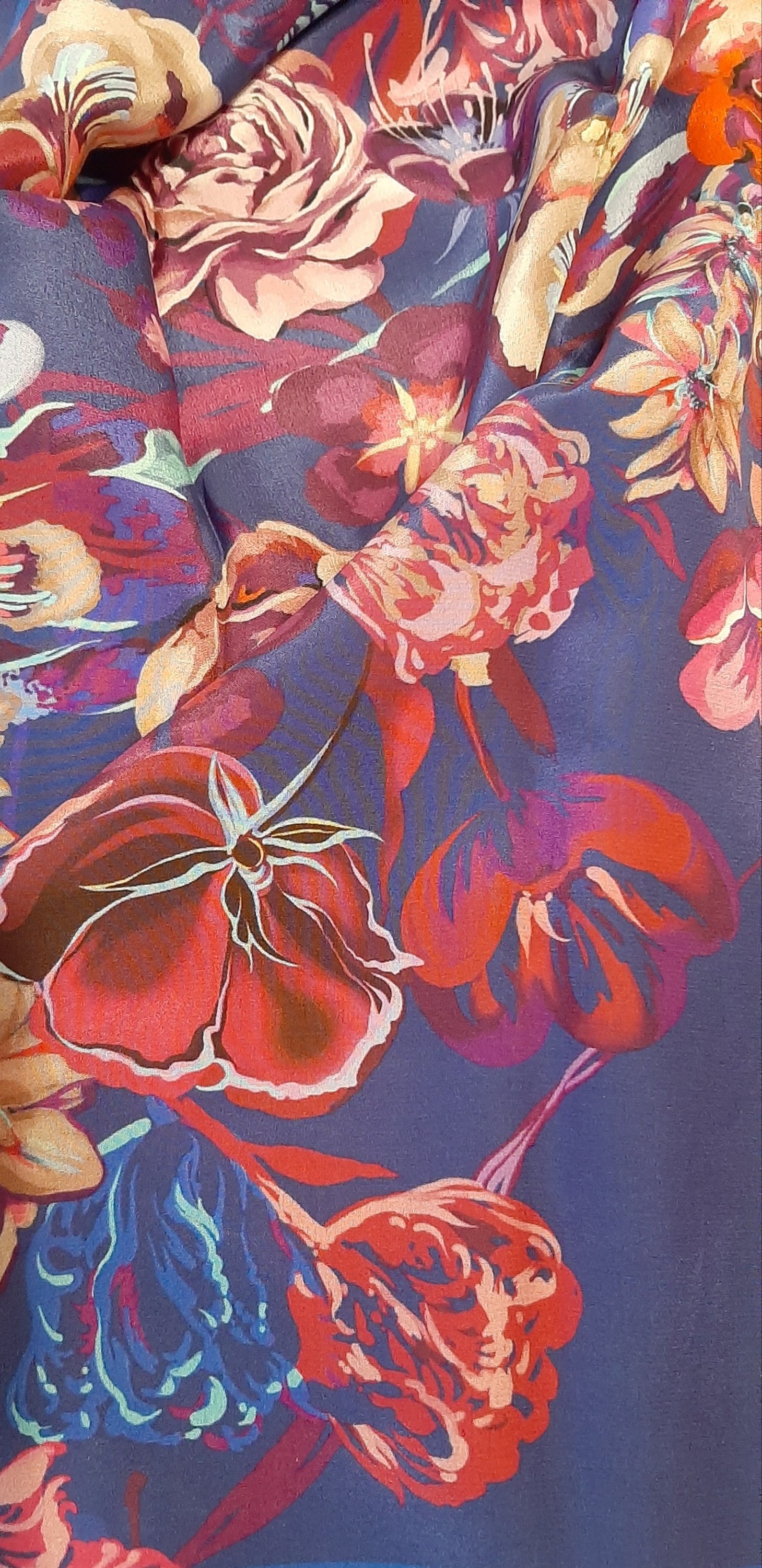 В результате случилась любовь с первого прикосновения. Соблазнило еще и то, что это был последний экземпляр платка в магазине. Подрубка идеальная, ни на одном моем шелковом платке пп мануфактуры такой качественной обработки края нет.