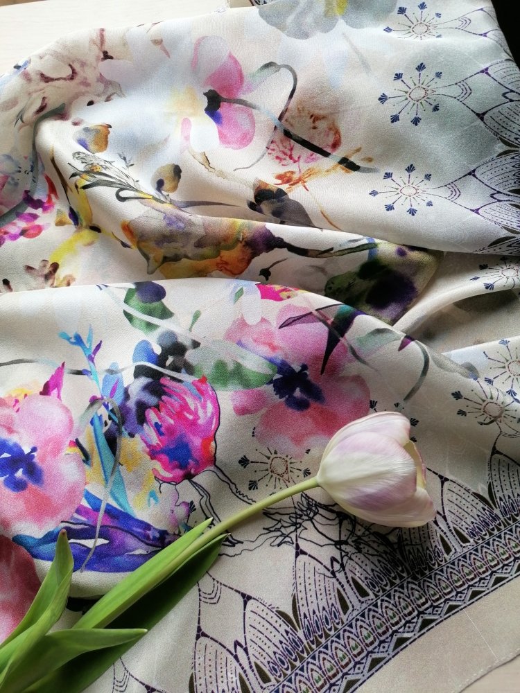 Чудесный платок! Рада, что перевыпустили. А то у меня не было ничего шелкового орнаментального в размере 89х89.