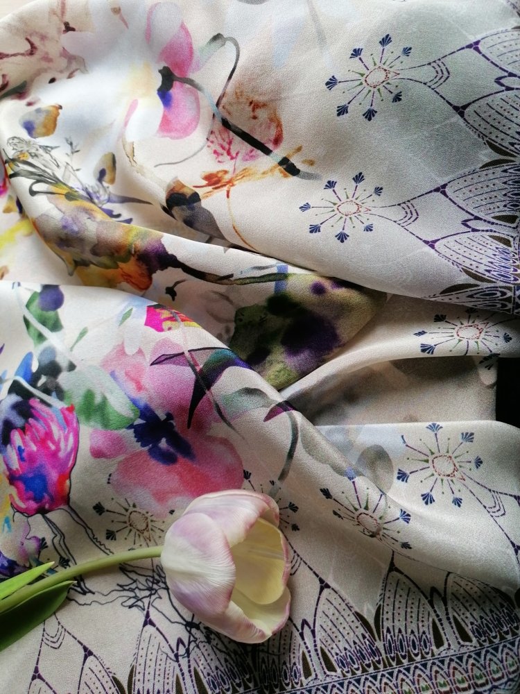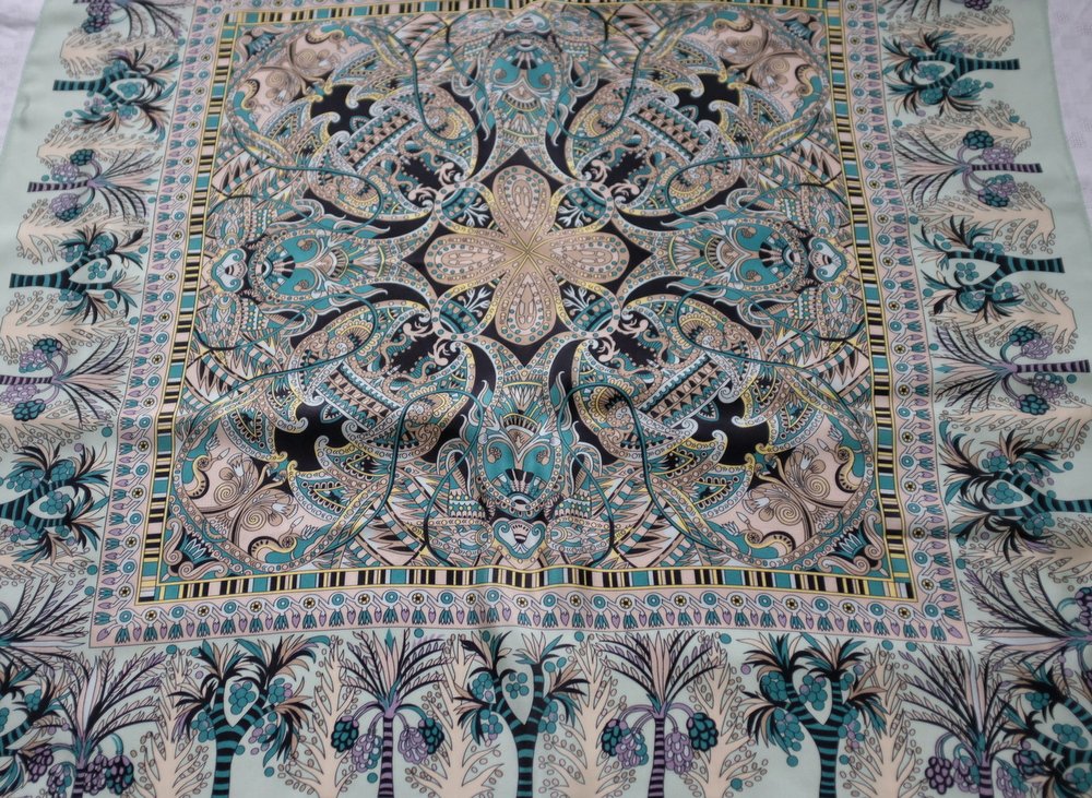 Чудесный платок! Рада, что перевыпустили. А то у меня не было ничего шелкового орнаментального в размере 89х89.
