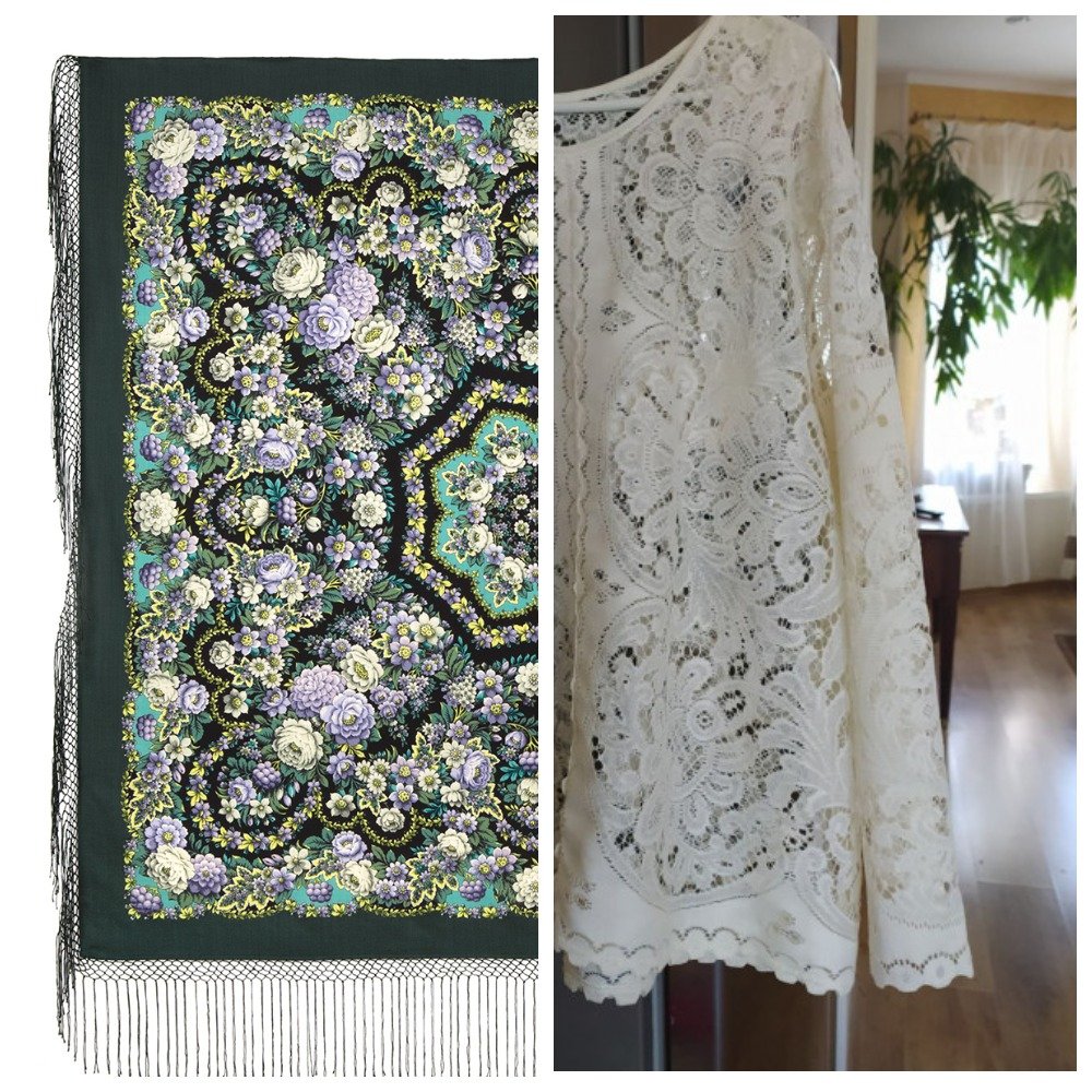 Еще Павловопосадский-9 можно попробовать: блуза здесь будет в роли изящной, "пенистой" подложки для шали. Как то так...