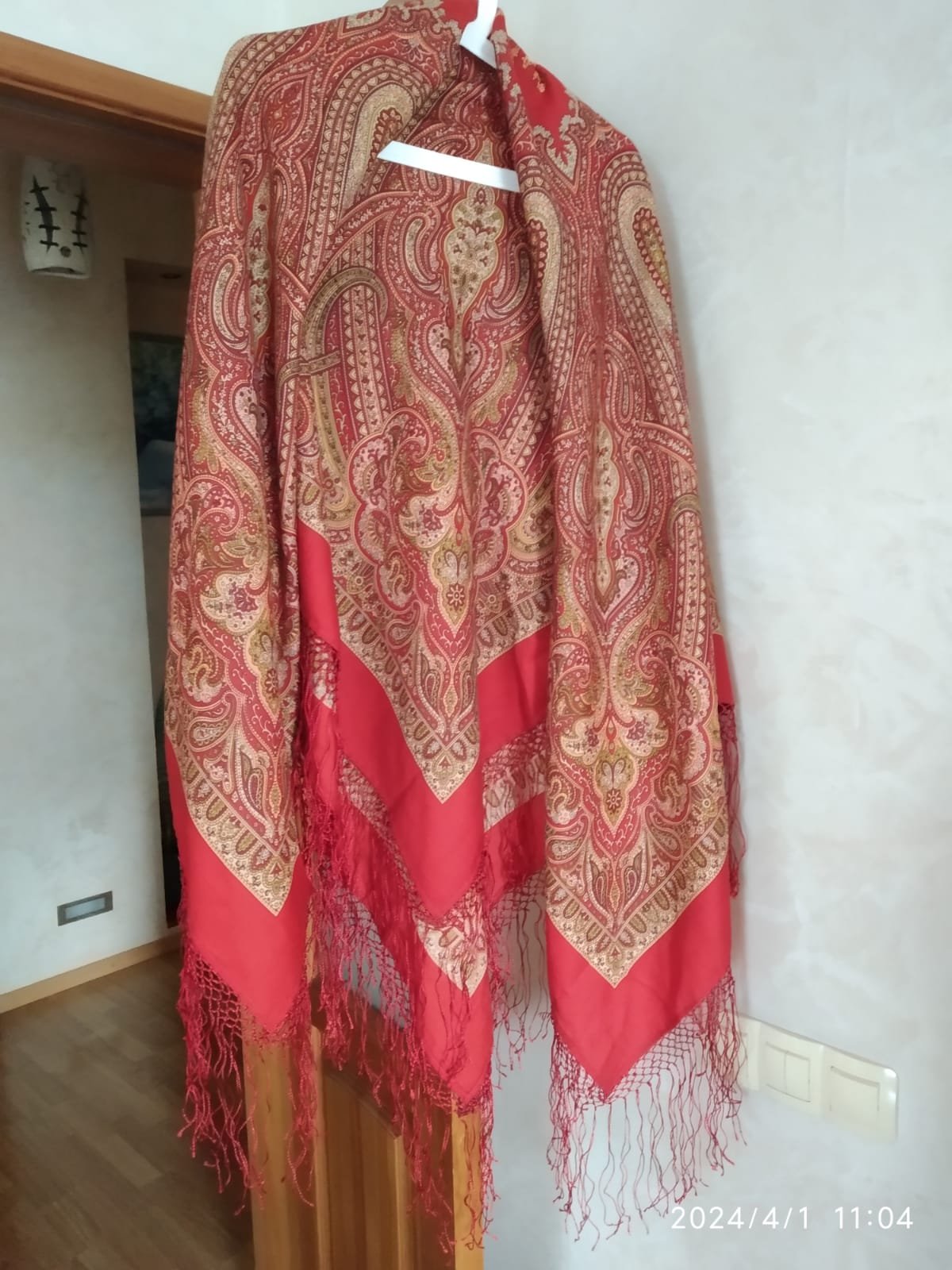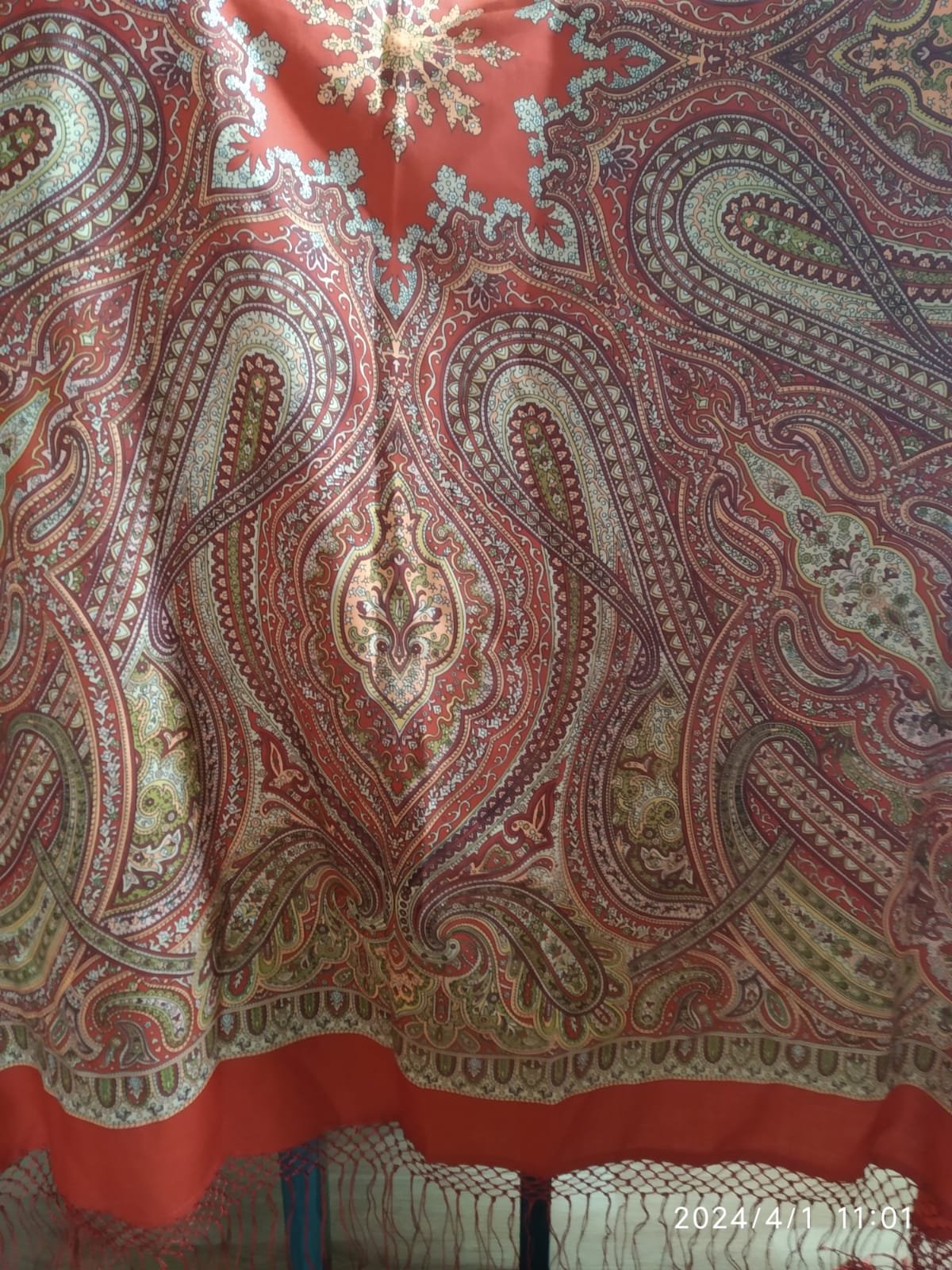 Шаль моей сестры, точно на экспериментальной ткани, но вот этикетку она не сохранила и колорит не помнит.