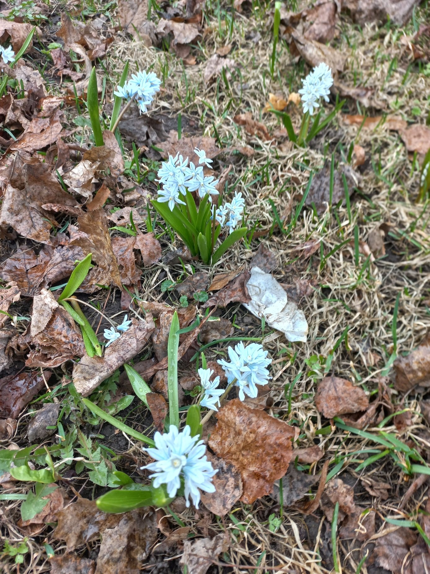А цветочки эти синие пролески называются, прямо во дворе откуда то взялись