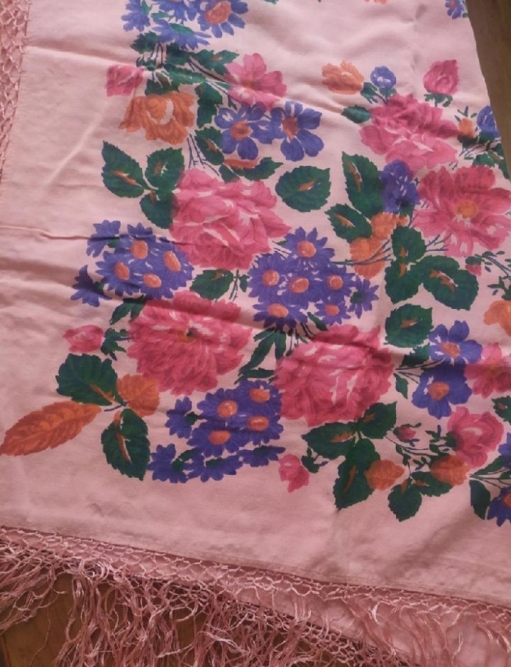 Описание продавца: платок от старинного народного костюма Рязанской губернии; косынка- половина шали; размер 140 по короткой стороне, 234 см по длинной; состояние соответственно возрасту, клеймо есть, похоже 1914 год; дореволюционная вещь: есть места где ткань расползается, но на фото выглядит все ок, так что для фотосессий- идеально, край подшит атласной лентой и шерстяными кистями;