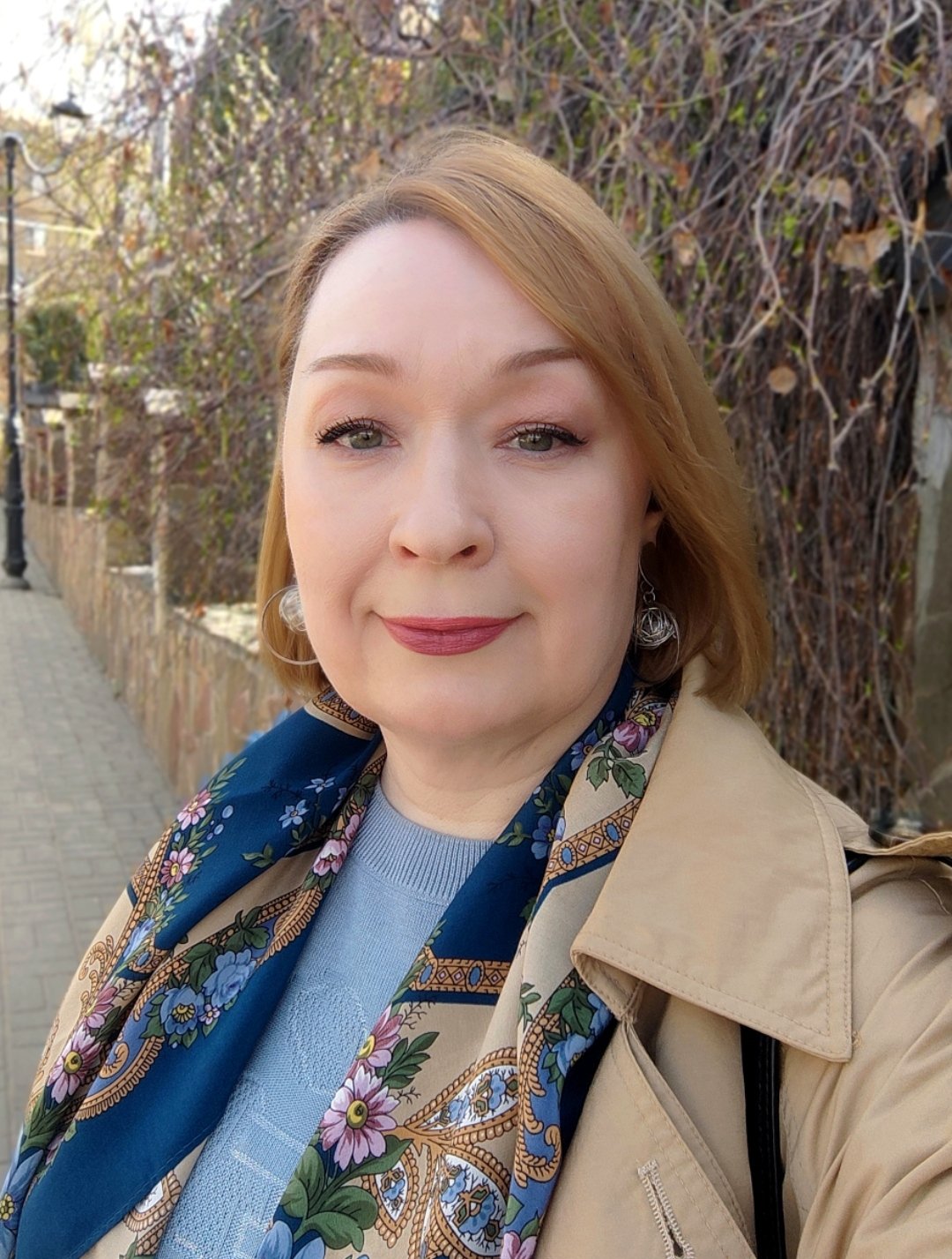 Нравится как по цветовой гамме вы платки и одежду сочетаете. Всегда с удовольствием смотрю ваши фото.
