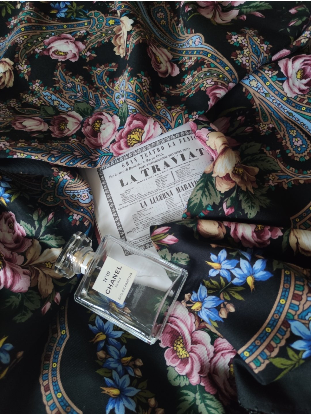 Мой новый любимчик " В парке Чаир" тоже немного про "пассеизм", как определял А.Бенуа любовь и внимание к аромату прошедших времен. Потому и аромат к нему винтажный. Но шаль вместе с тем радостная и приветливая, очень легкая. Потому и аромат такой.