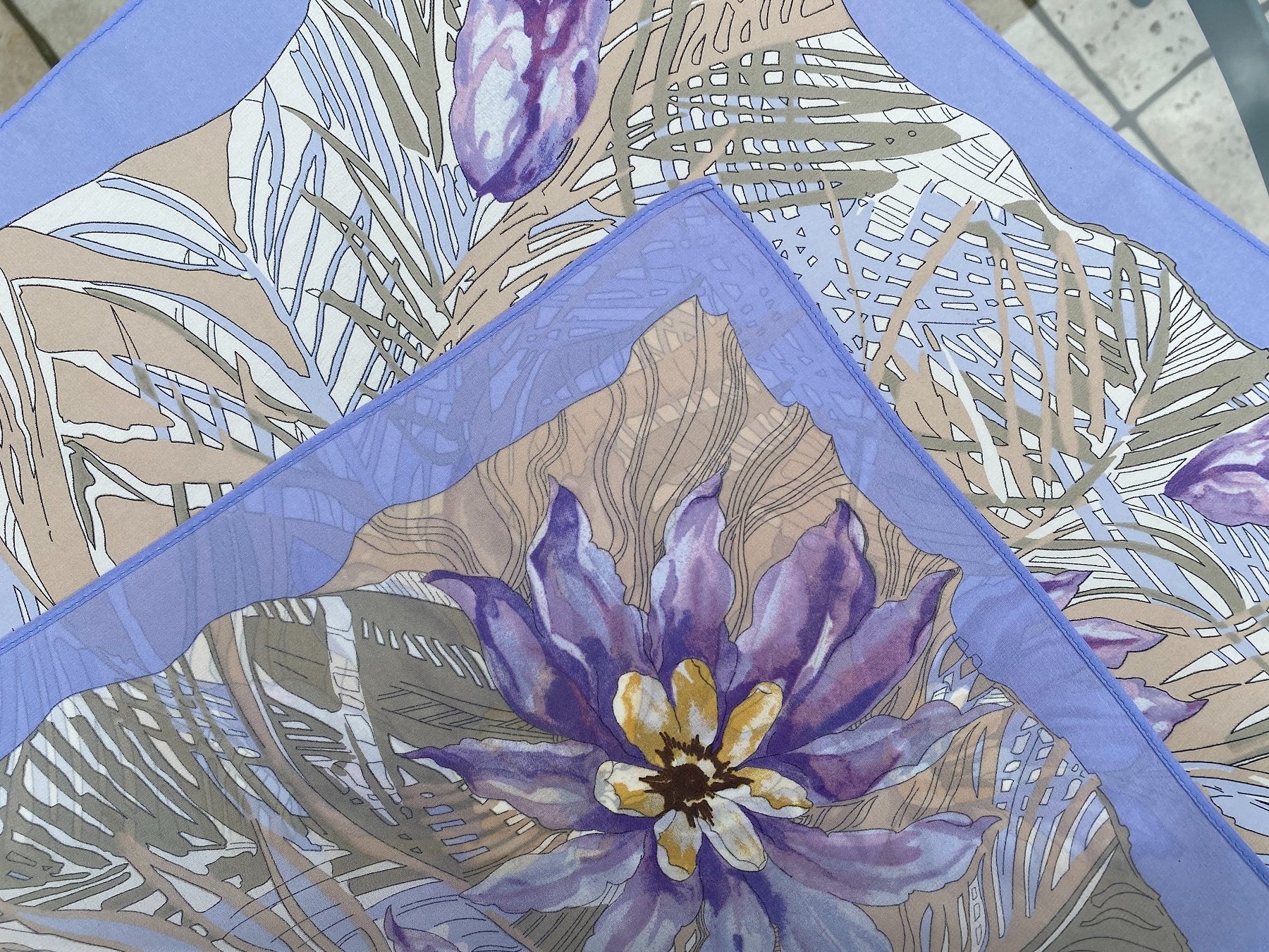 Не поленилась, достала свои Тени на песке в 3-х колоритах, 52х52 см из самых первых выпусков. Нет, ничего такого нет, вполне можно принять за ручную роспись.