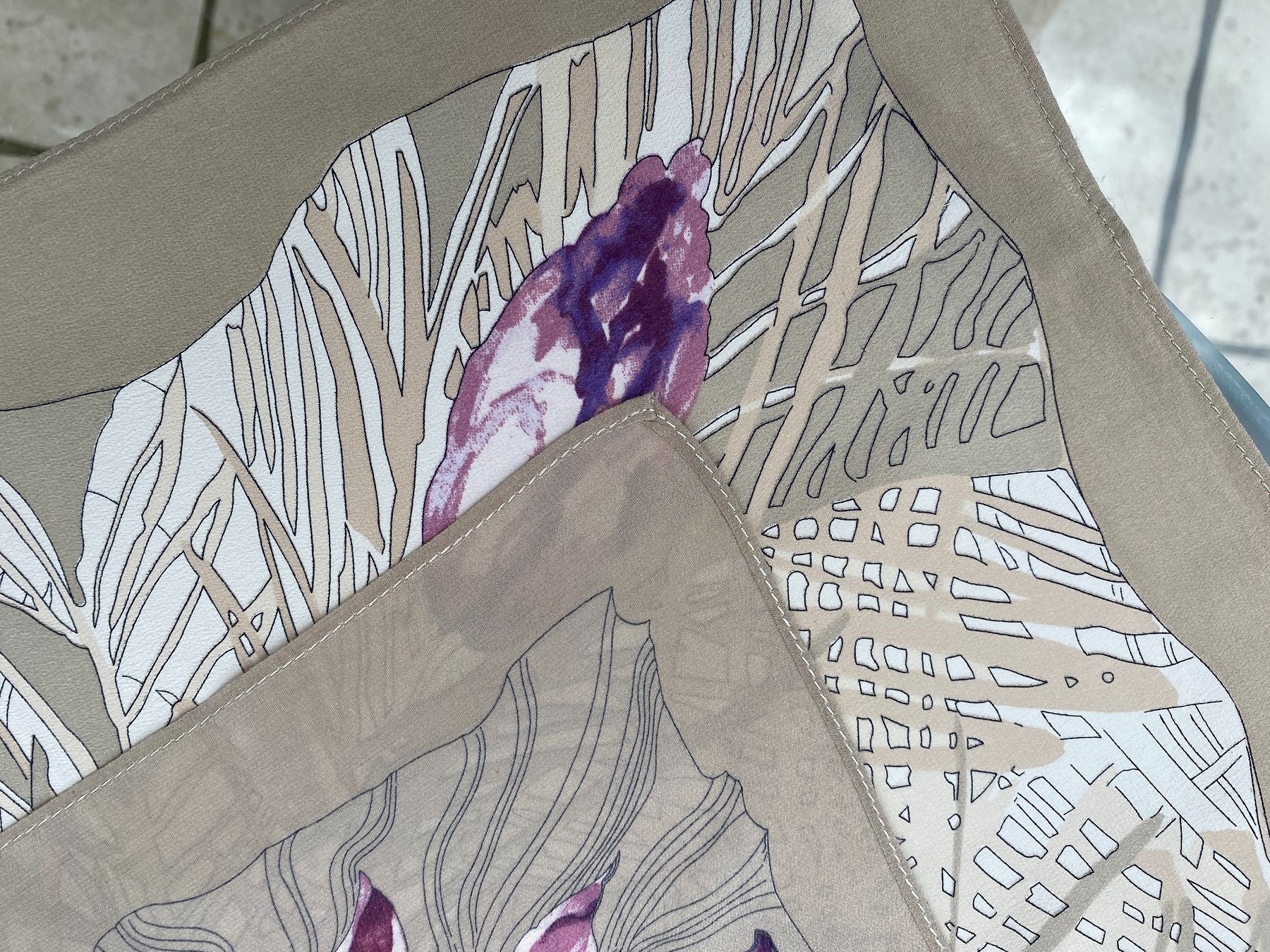 Не поленилась, достала свои Тени на песке в 3-х колоритах, 52х52 см из самых первых выпусков. Нет, ничего такого нет, вполне можно принять за ручную роспись.