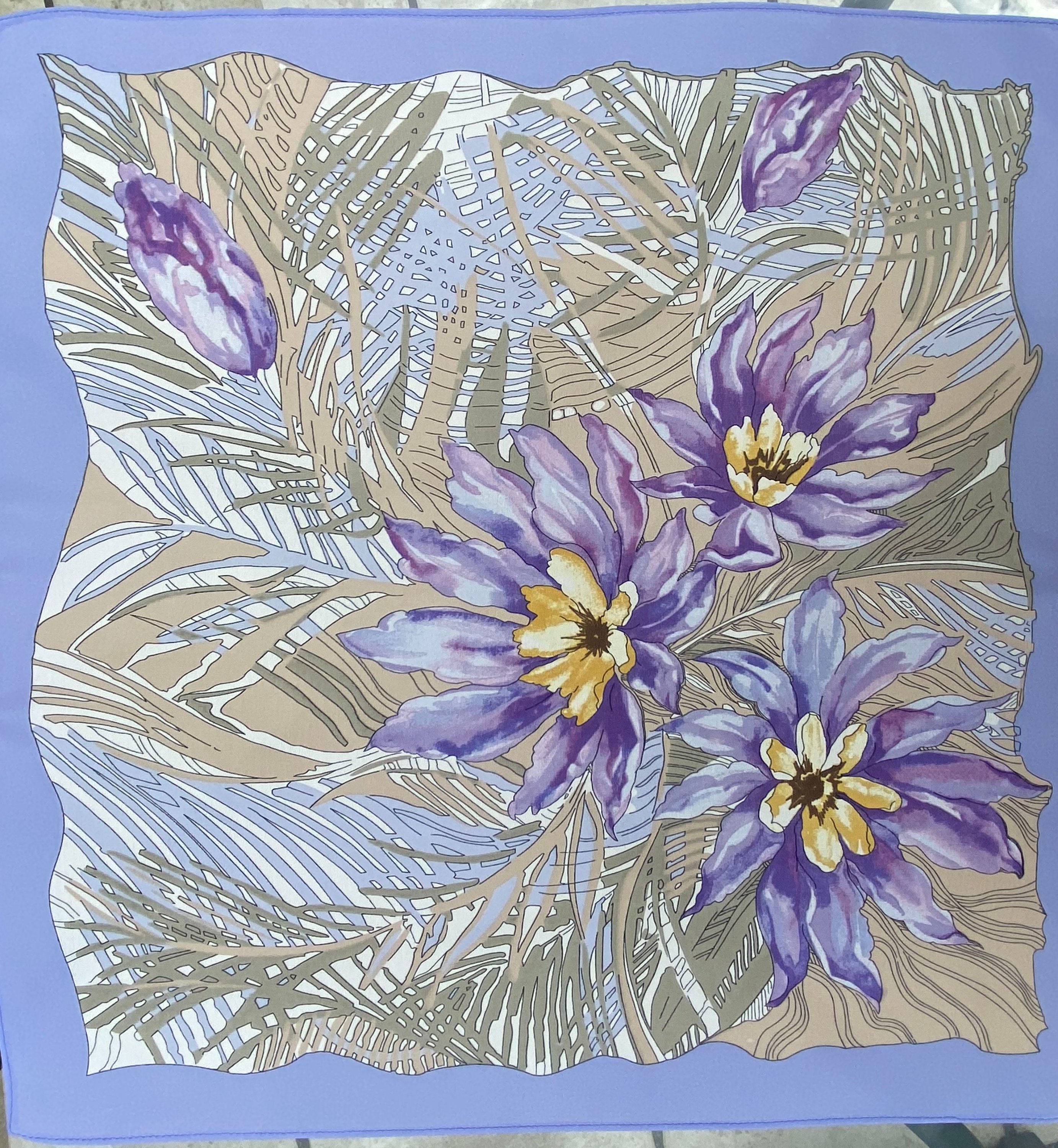 Да, странное явление. Какая-то пиксельность в раскрасе цветка. Причем, только цветы такие пиксельные, все остальные элементы раскрашены ровно, без сеточки. Не пойму, может так задумано? Мне кажется, что если бы это явление появилось из-за увеличения рисунка на другой размер платка, то сетчатость была бы по всему рисунку, его же весь "растянули", и фоновые заливки и "тени" ведь тоже увеличились в размере. А тут мы видим сетчатость только на цветах. Не знаю что это и почему, знаю только что в жизни эта сетчатость не так бросается в глаза, как на фото с увеличением, и в общем и целом, меня она, эта сетчатость не расстраивает, скорее просто удивляет.