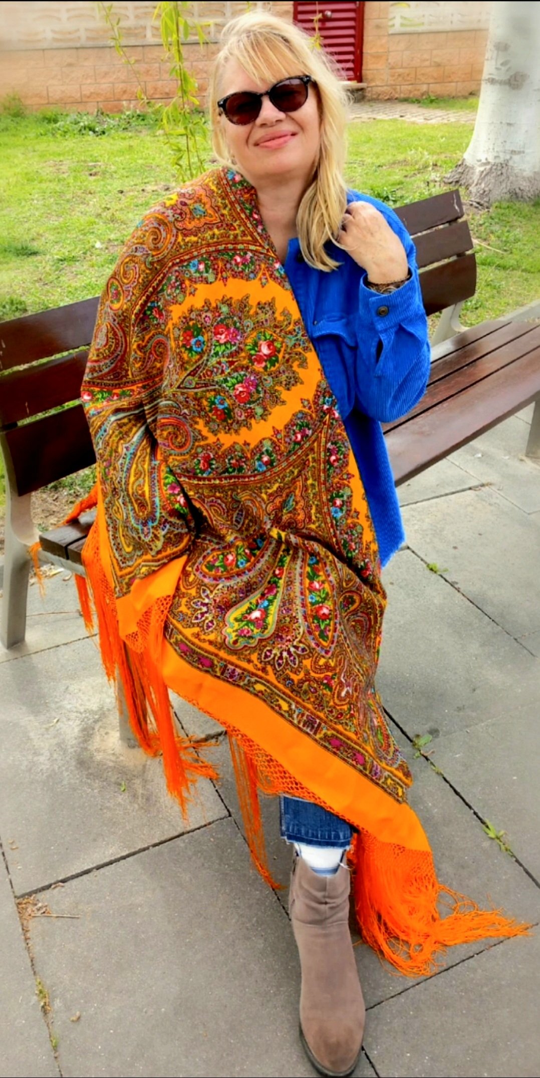 Какая красота! Прекрасные Подмосковные вечера и Волшебница-апельсинка! Вам очень идут такие солнечные яркие шали :: Всегда любуюсь Вашими показами