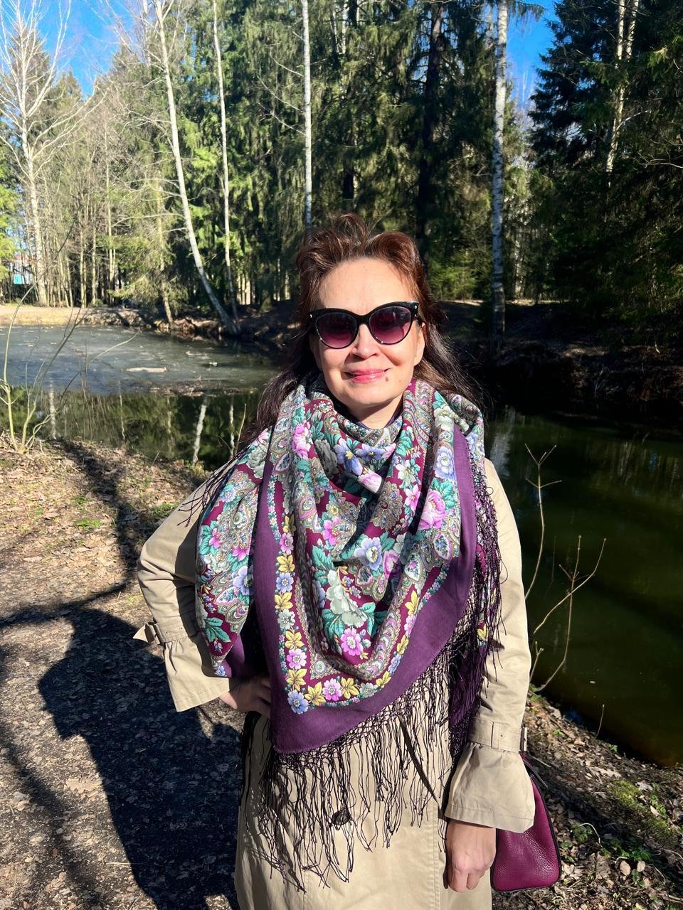 Надя, платок мне показался довольно сложным, но на вас он мягок и очень органично воспринимается с вашими цветами .