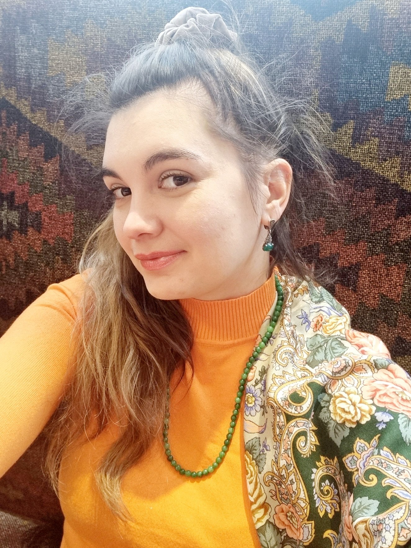 Прекрасные новенькие! Вам очень идёт Ностальгия-18. Очень сложный колорит. Он мало кому подойдёт. У меня есть 14 и 16. Пыталась примерить и 18й… Заказала и сдала обратно. Мне в нем цвета показались очень ядовитыми. Но на Вас вся эта ядовитость куда-то исчезла. Платок смотрится великолепно. Надо же!