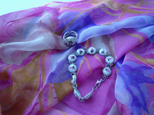 Очень простой, но милый комплект финифти - колечко и браслет- куплен в Ростовском Кремле. На фото вместе с шарфиком Чистые пруды.