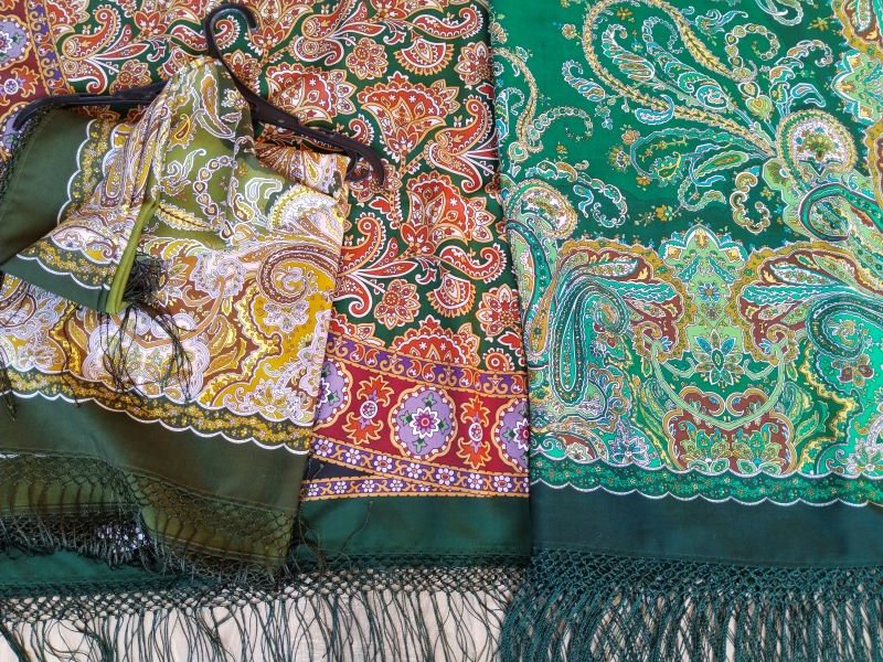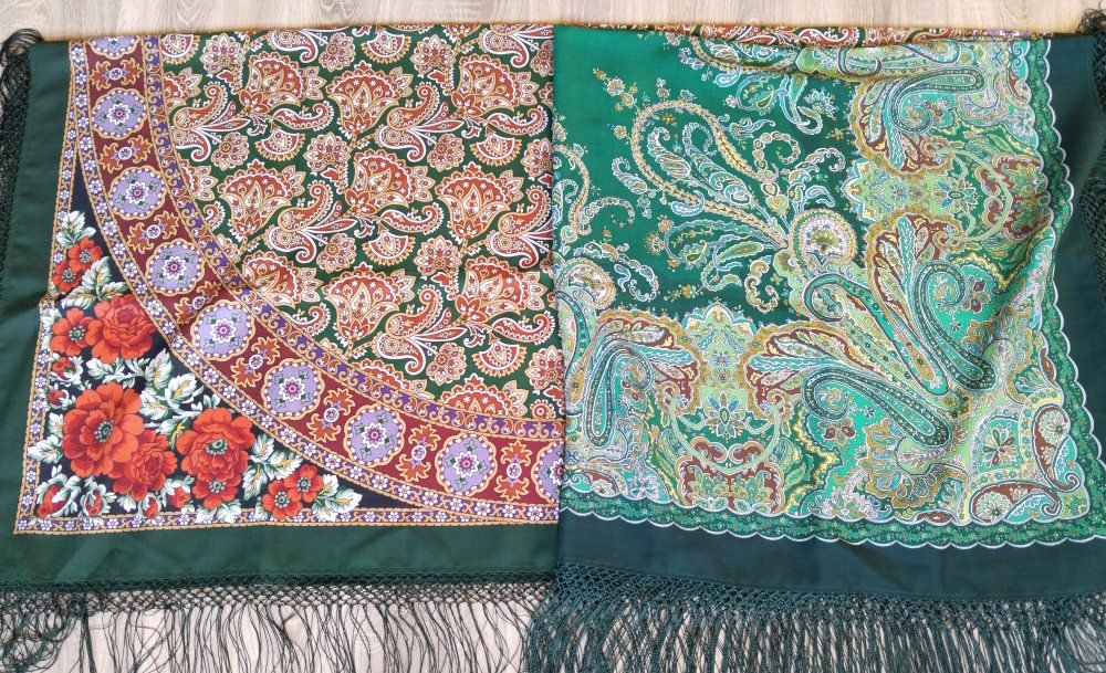 Вернисаж 9 (31.05.23 г.) и Караван 30 (это не перевыпуск, шаль старая, шершавая, малахитовая)