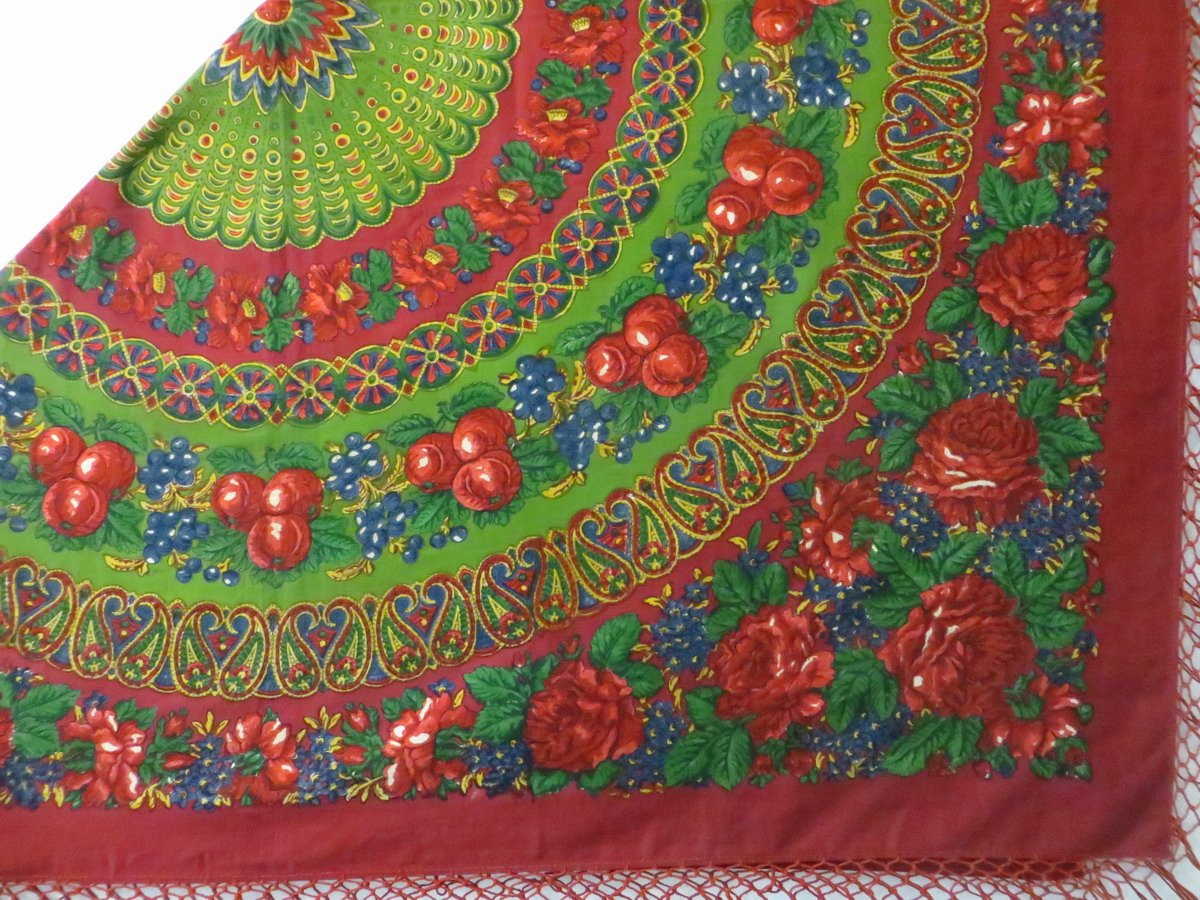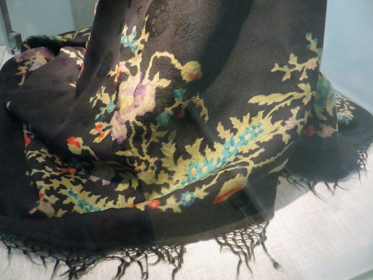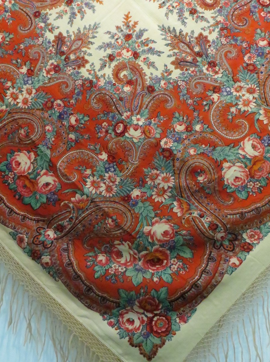Красная шаль, к сожалению, лежала в витрине и высоко, поэтому снимок вышел зюмо некузявый.
