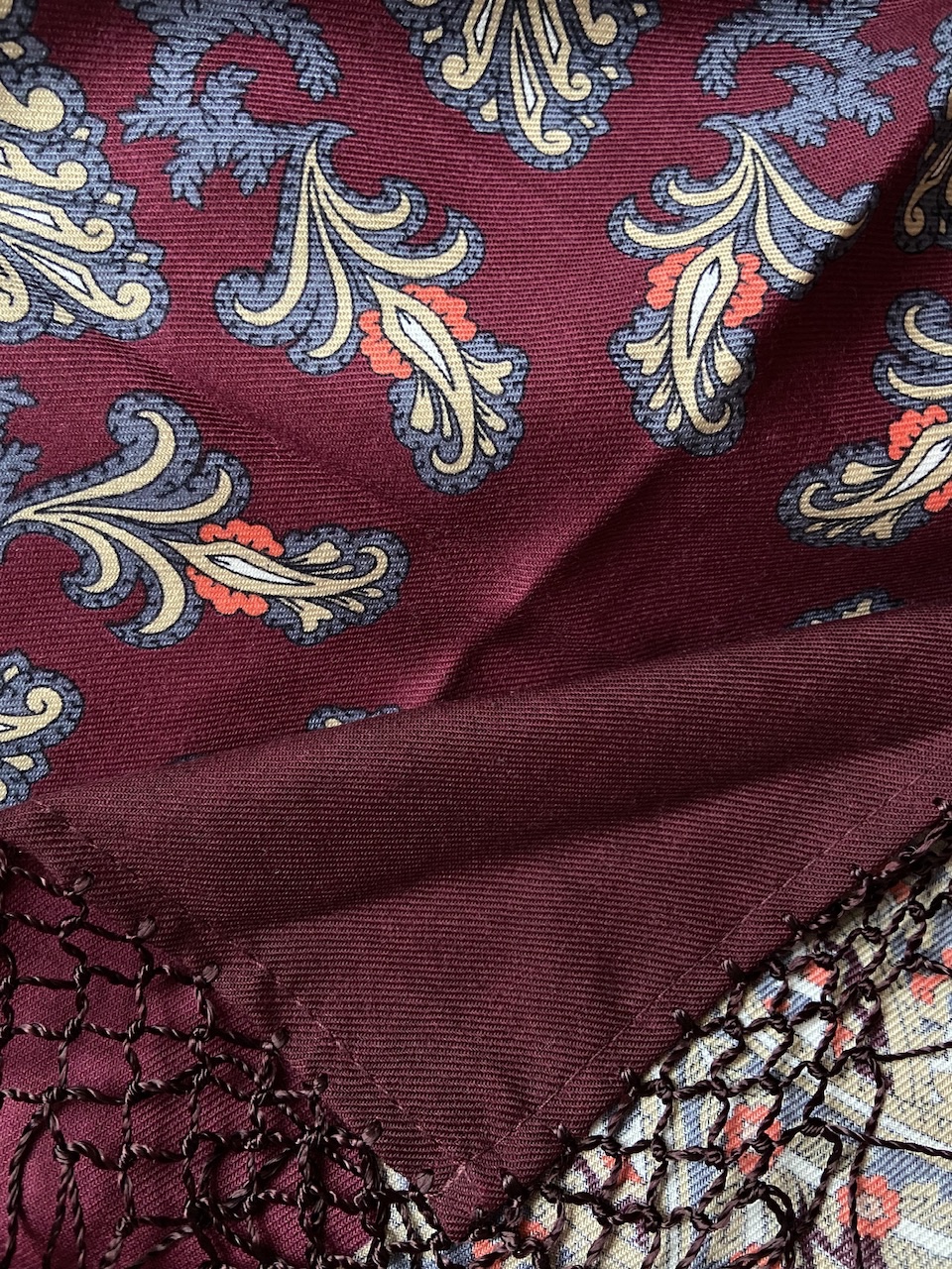 Наплывов особых не заметила. Очень нравится ткань. Кайма, углы и бахрома просто отличные