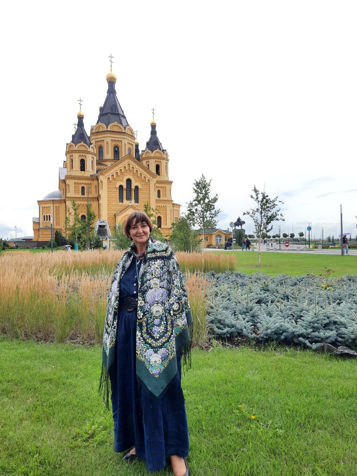 Таня, удачное место для фото! Посмотри, как голубые елочки перекликаются с шалью! Универсальная шаль, во многие образы идеально вплетается)