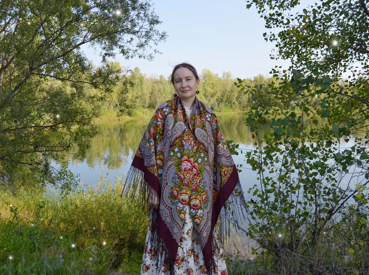 Демонстрируем ношение платков и шалей.
