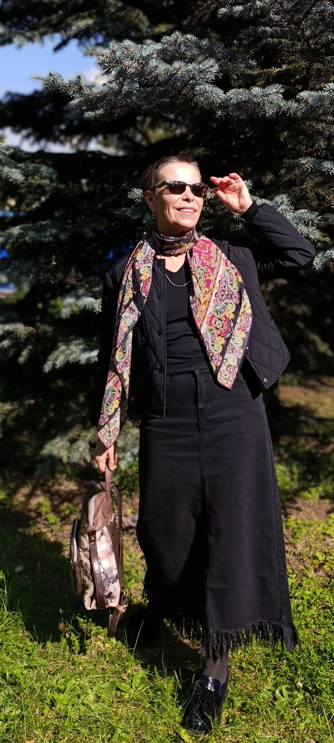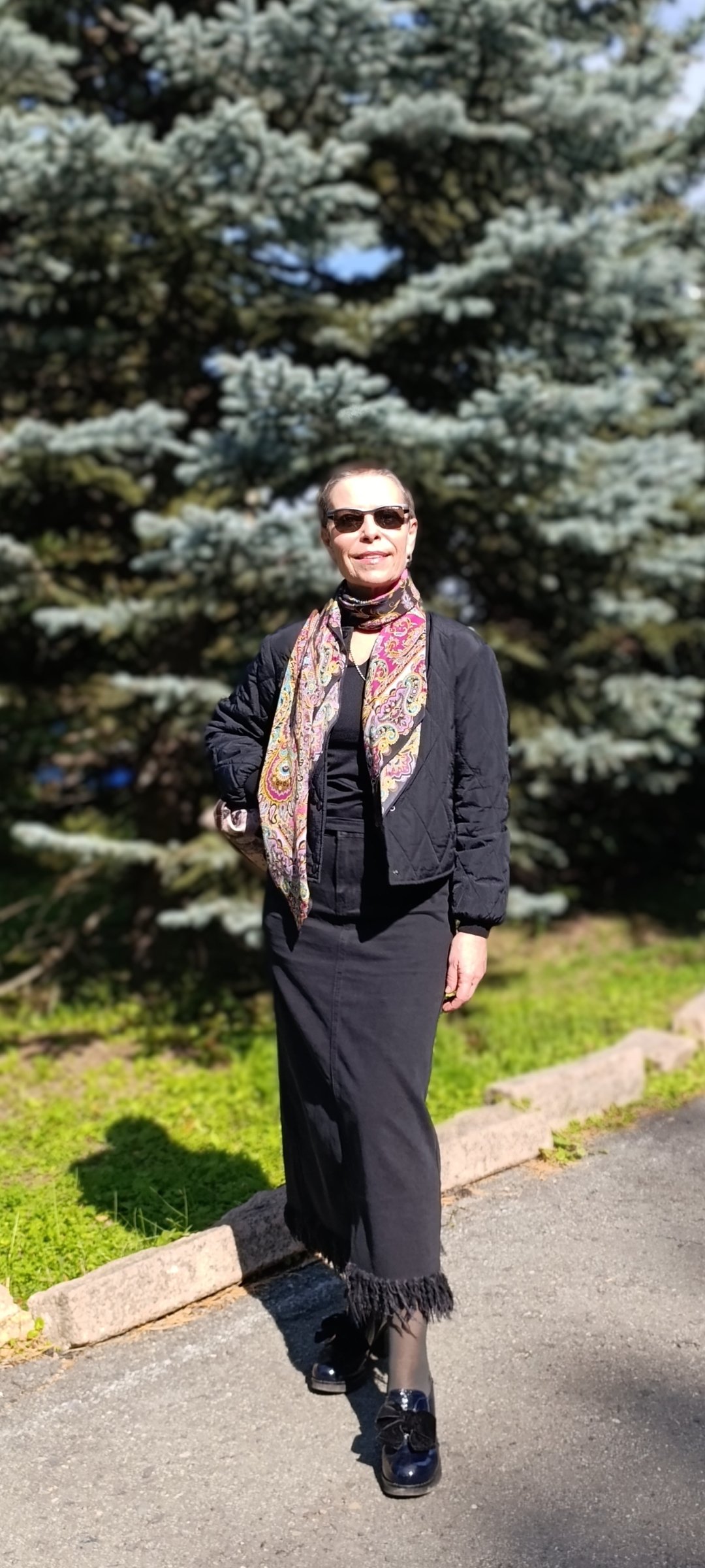 Ирина, шикарно! Нравится, как легко вы носите любые платки и шали. Не боитесь удалять лишние, на ваш взгляд, сантиметры.