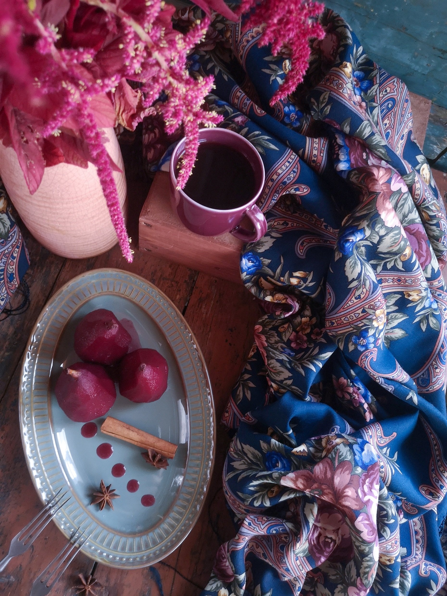 Ах, как это прекрасно! Даже не знаю какая композиция мне нравится больше - с Шафраном, или Русскими сезонами. Наверное, всё-таки, с Русскими сезонами. Изысканное попадание в цвета предметов компоновки натюрморта.