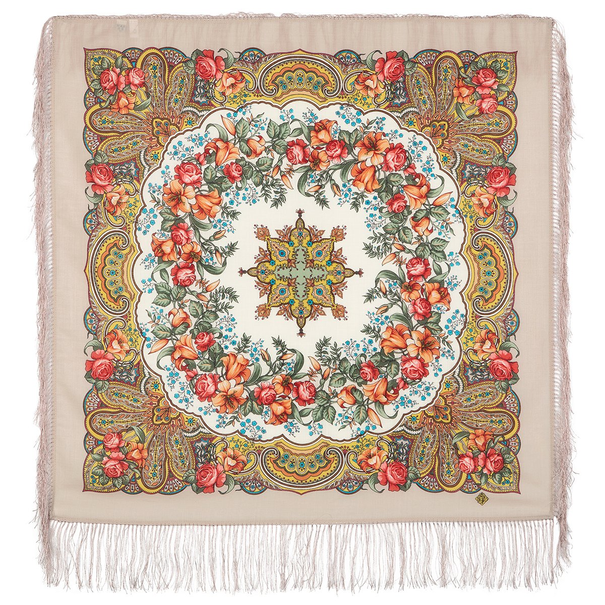 Еще лилии:Платок шерстяной с шелковой бахромой "Русский перепляс", вид 2, 89x89 см